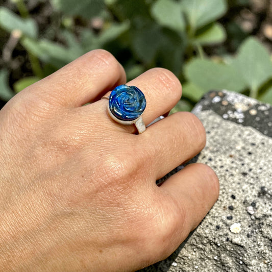 خاتم فضة بحجر لابيس لازورد منحوت