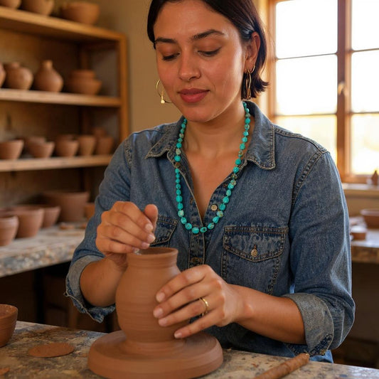 عقد مميز فضة وأحجار فيروز ولابيس لازورد طبيعي