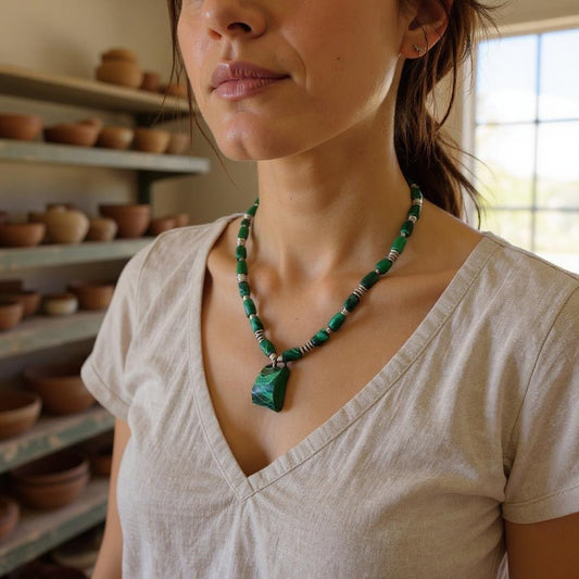 عقد مالكايت وهيمتايت احجار اصلية وفضة