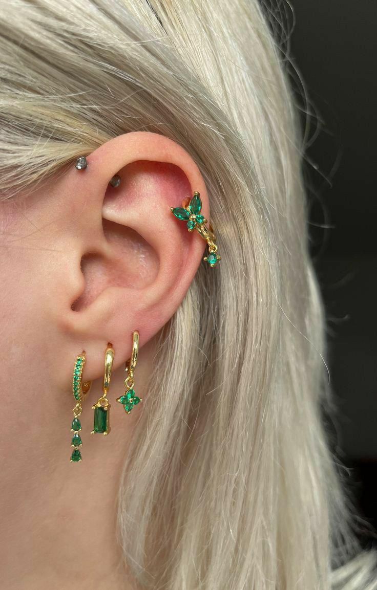 حلق فضة بجواهر أصلية سترين وياقوت أصفر ولؤلؤ نادر