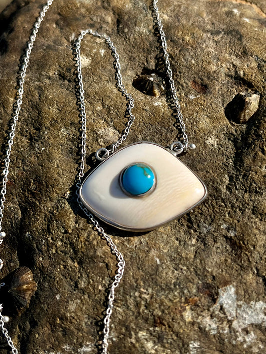 عاج سن فيل وفيروز أصلي.عقد فضة