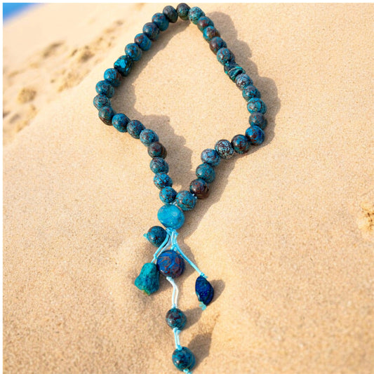 سبحة وعقد شاكرات الطاقة عقيق وفيروز وفضة