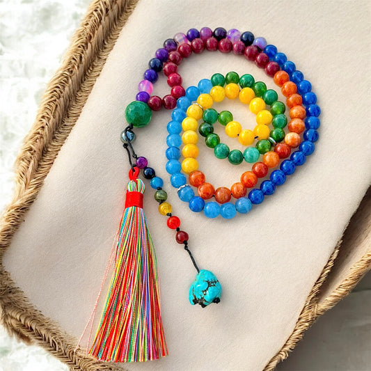 سبحة وعقد شاكرات الطاقة عقيق وفيروز وفضة