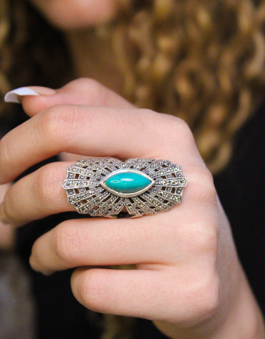 نفذ المنتجفيروز طبيعي-خاتم فضة ماركيزيت