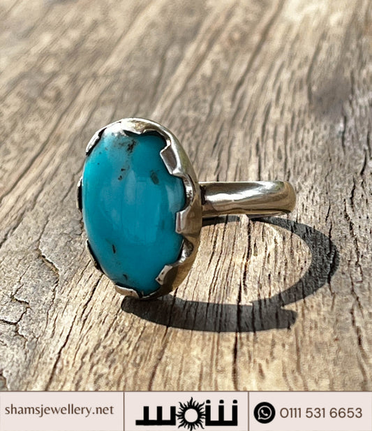 خاتم فضة بحجر فيروز امريكي أصلي-للجنسين