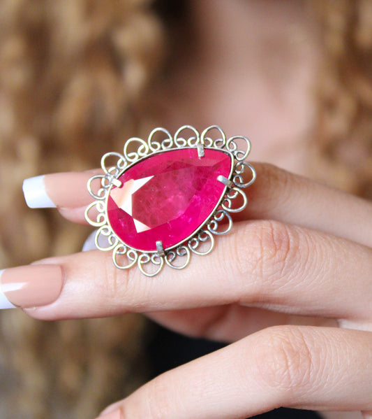 جوهرة ياقوت أصلية نادرة خاتم فضة