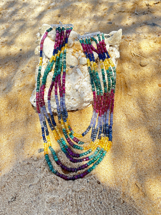 عقد ملكي جواهر ياقوت وزمرد وزفير نادر وفضة