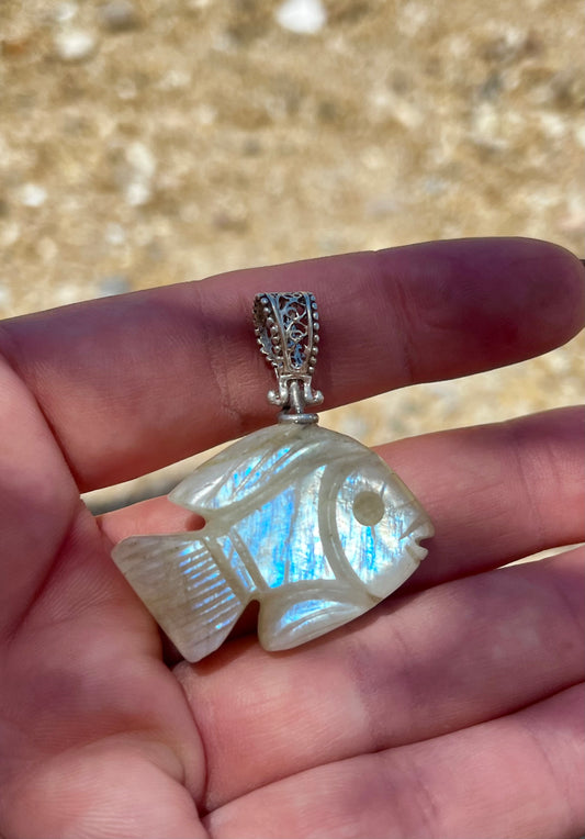 دلاية منحوتة حجر القمر طبيعي وفضة