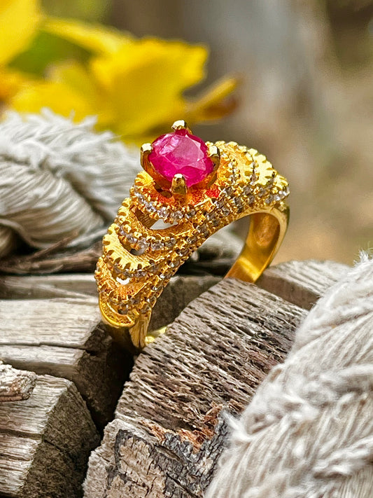 جوهرة ياقوت سيلاني خاتم فضة مطلي دهب