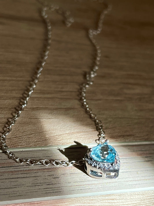 جوهرة اكوامارين في سلسلة قلب فضة ايطالي