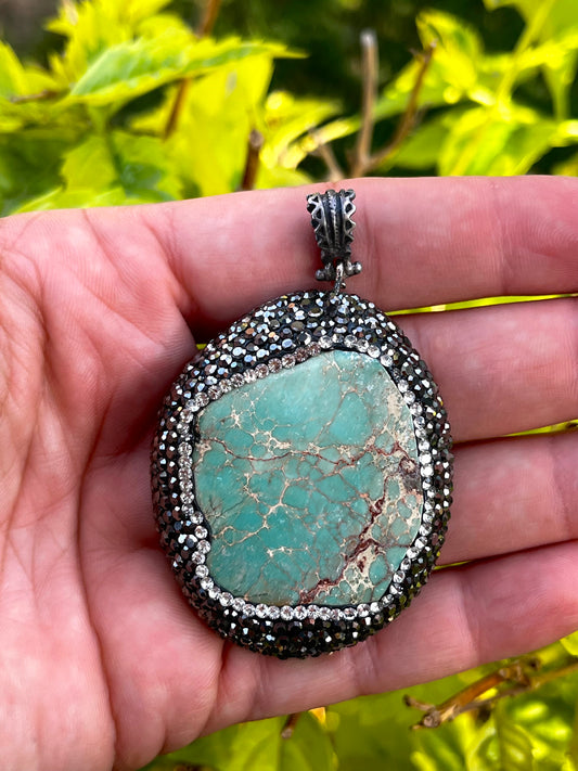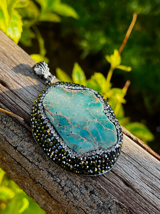 دلاية ضخمة حجر فيروز أصلي وتعليقة فضة