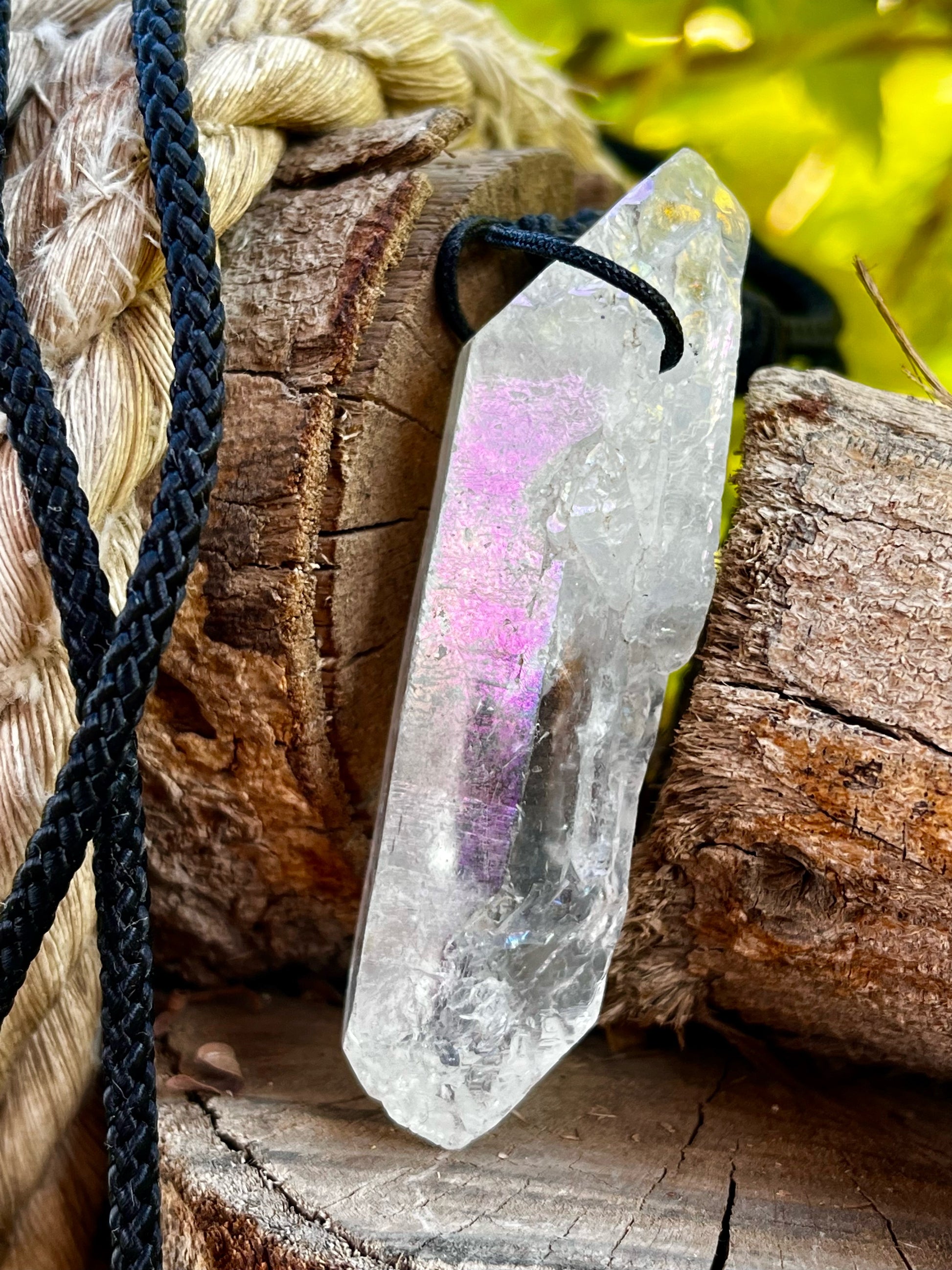 عقد للجنسين أنيق جذاب ذو طاقة عالية قوية يمكن الشعور بها لدى لمس حجر أورا كوارتز الطبيعي حجر كريم أصلي خام على طبيعته كما تم استخراجه واستقطاعه من باطن الحبال والصخور.