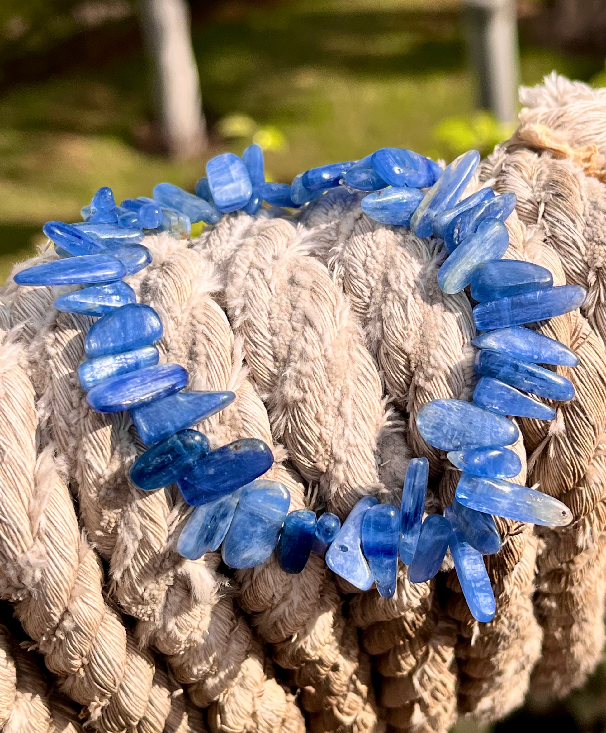 الحجر كاينايت خام بدرجة أزرق عميقة متألقة لامعة ذات بصمة وتميز