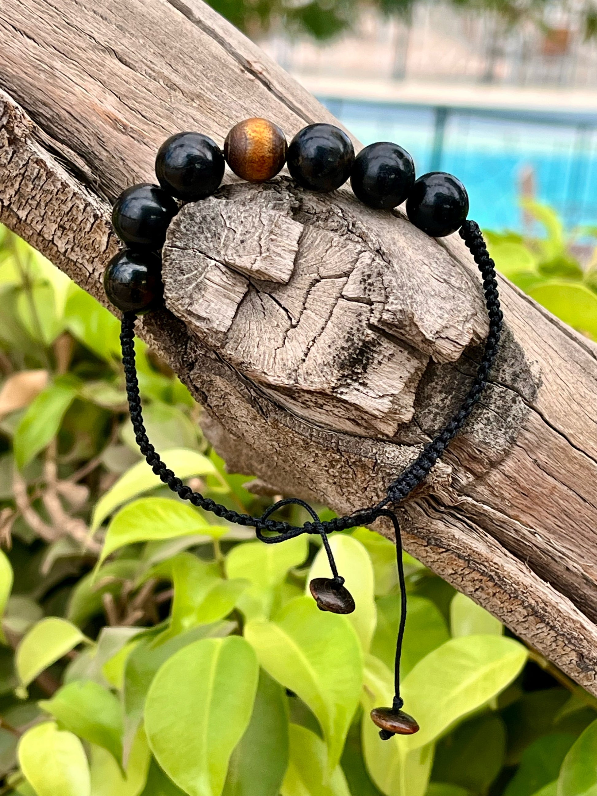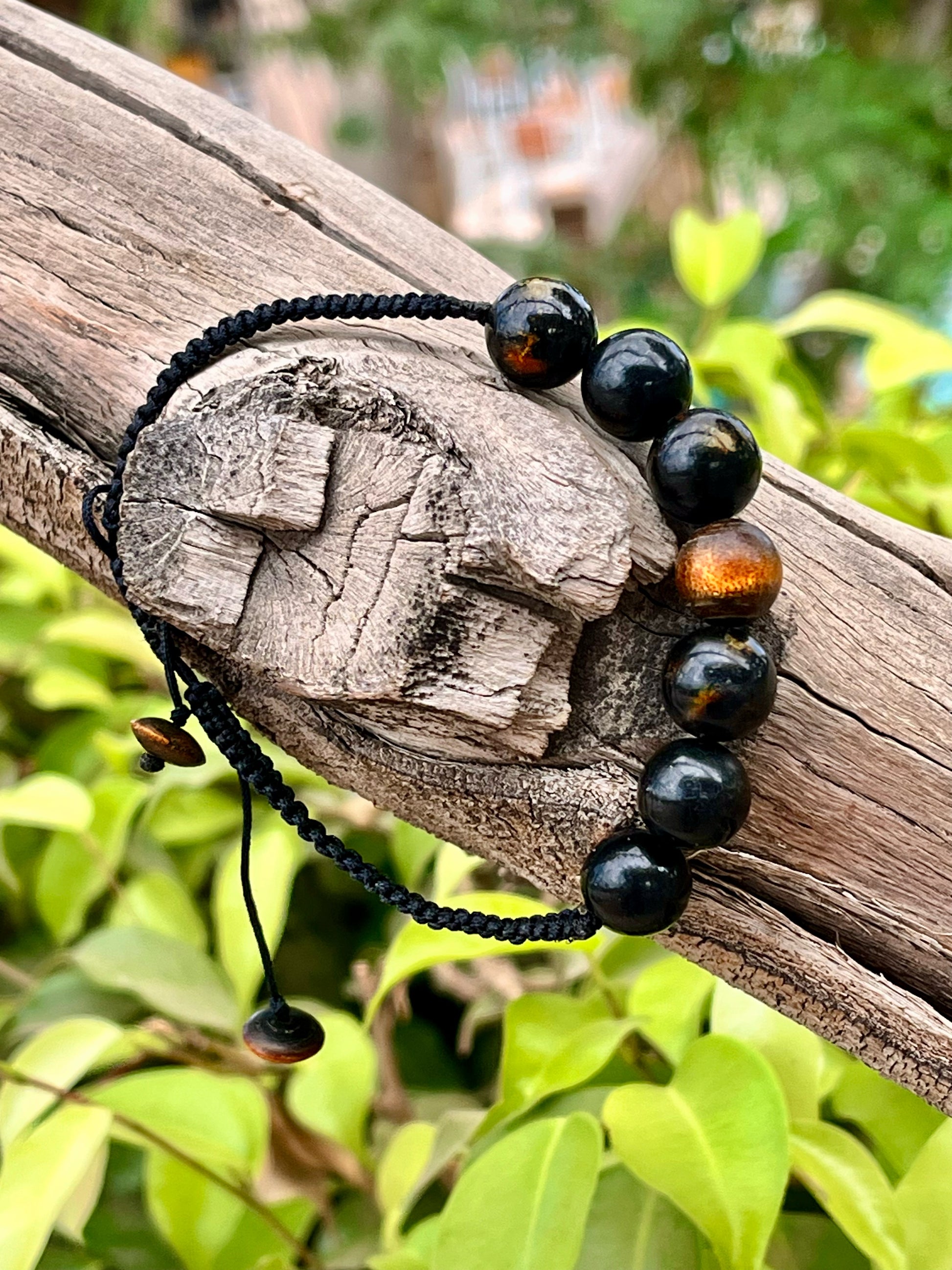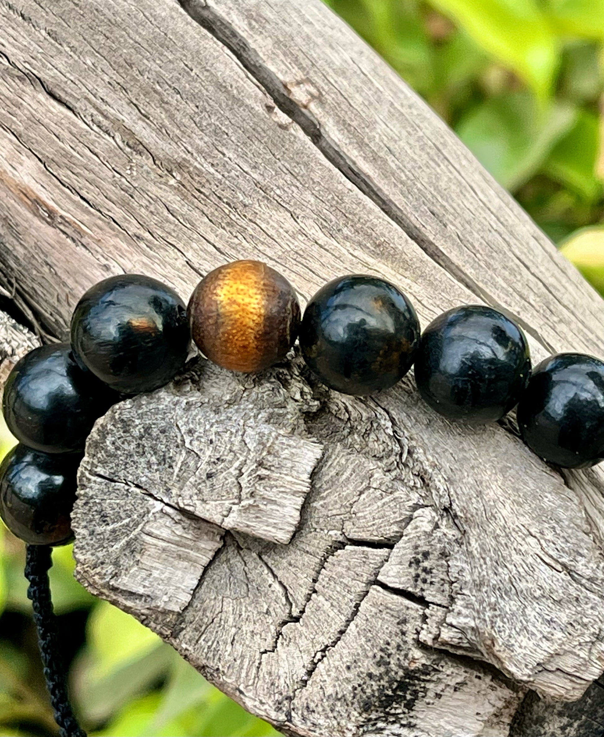 حبات الاسورة كبيرة 10-12مل يسر اسود بعروق دهبي درجة اولى