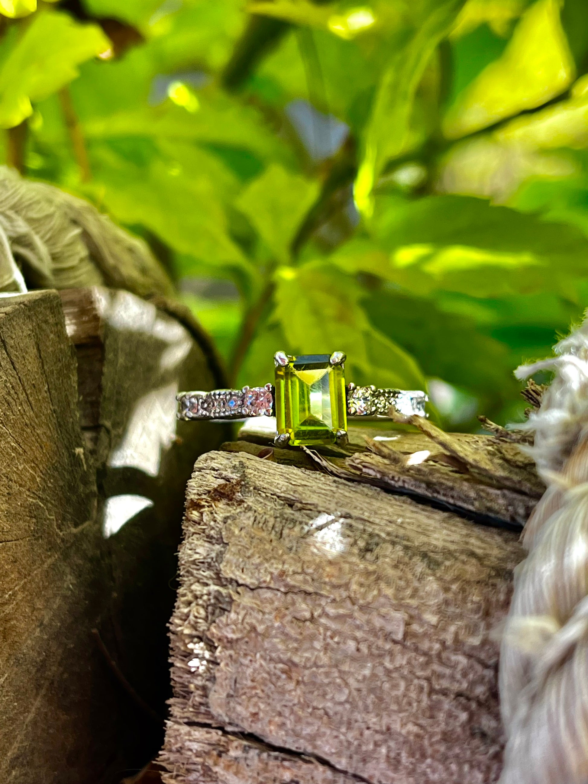 جوهرة زبرجد أصلية خاتم فضة ايطالي