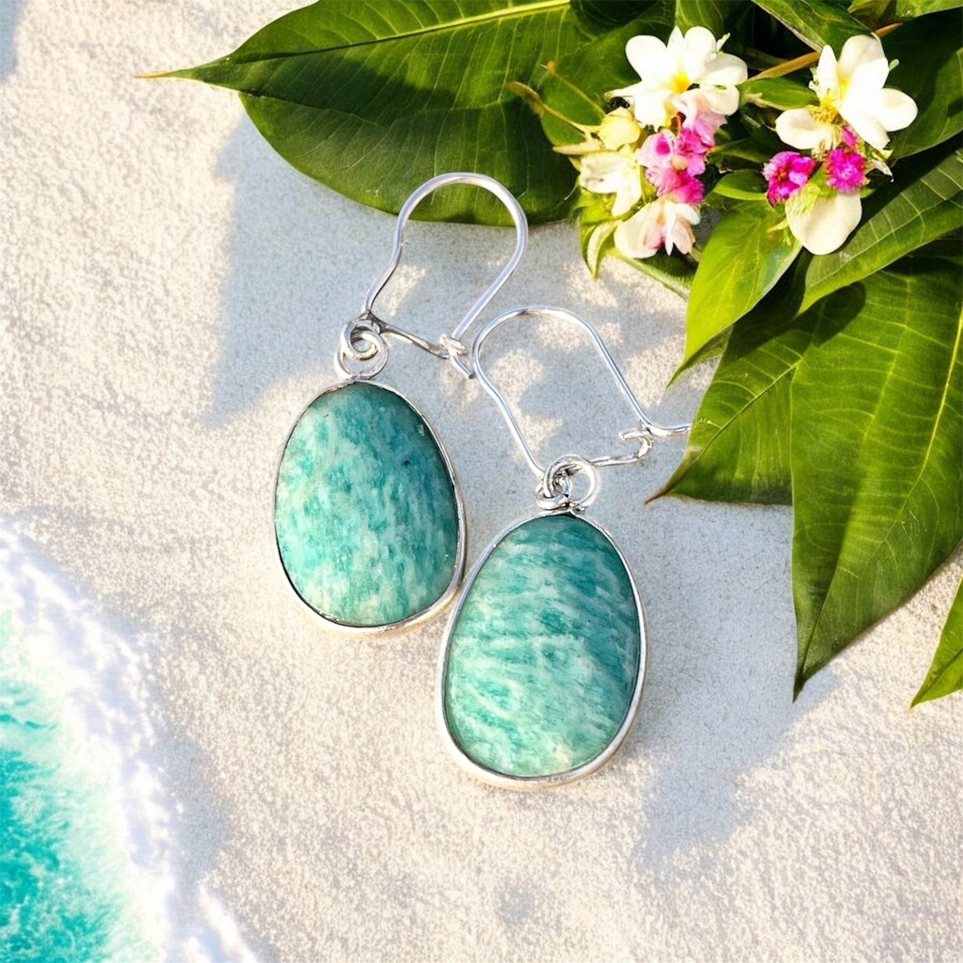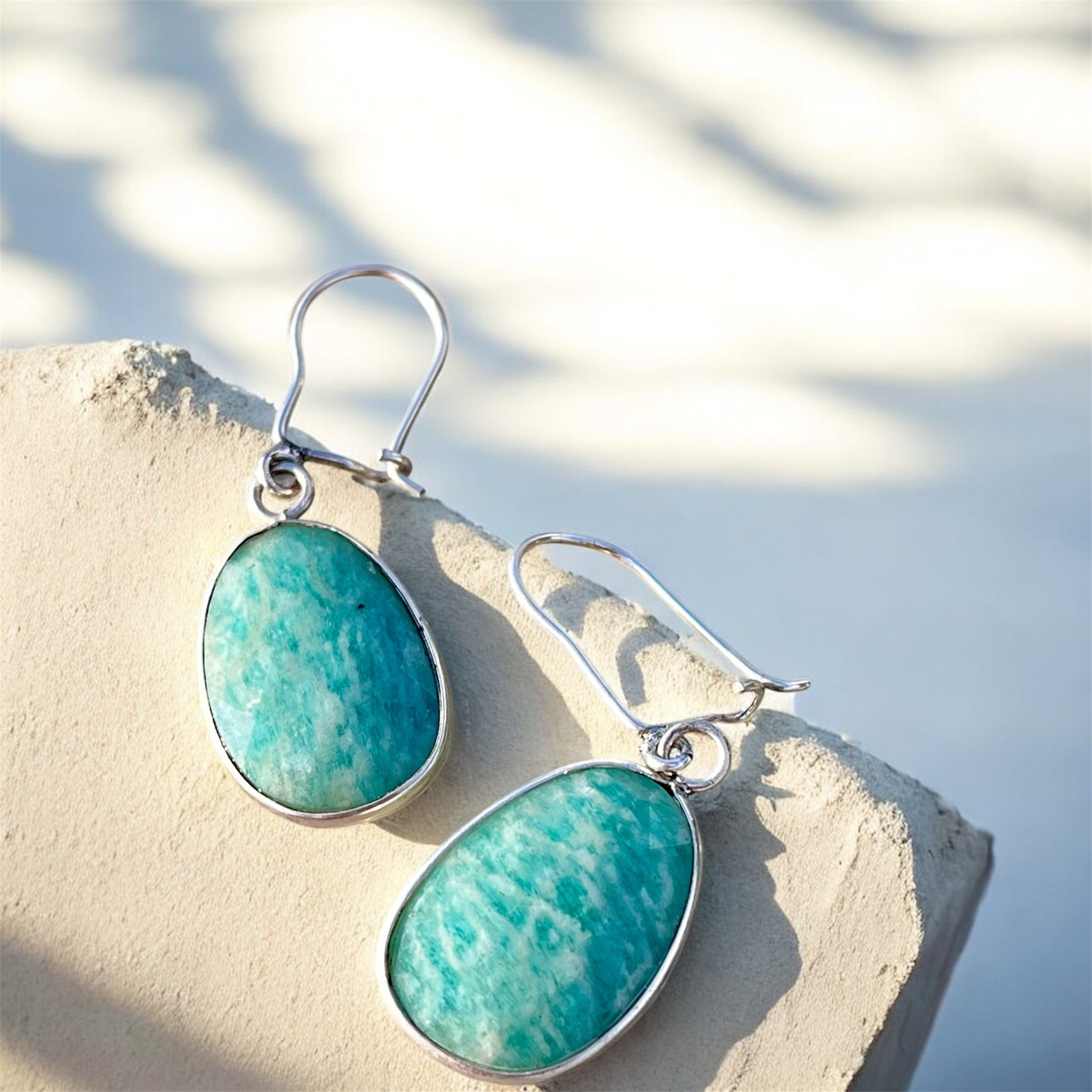 حلق فضة بحجر امازونايت اصلي