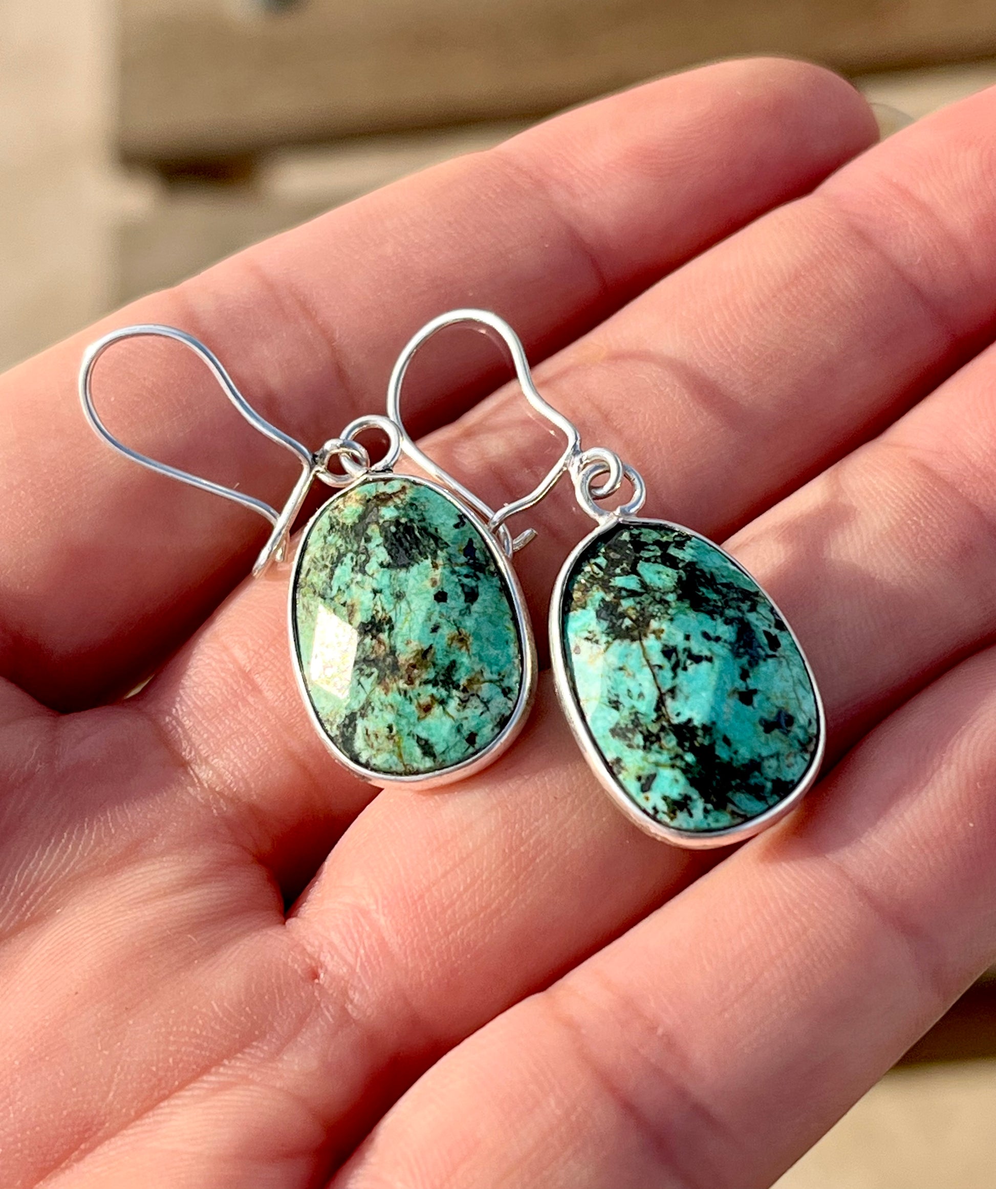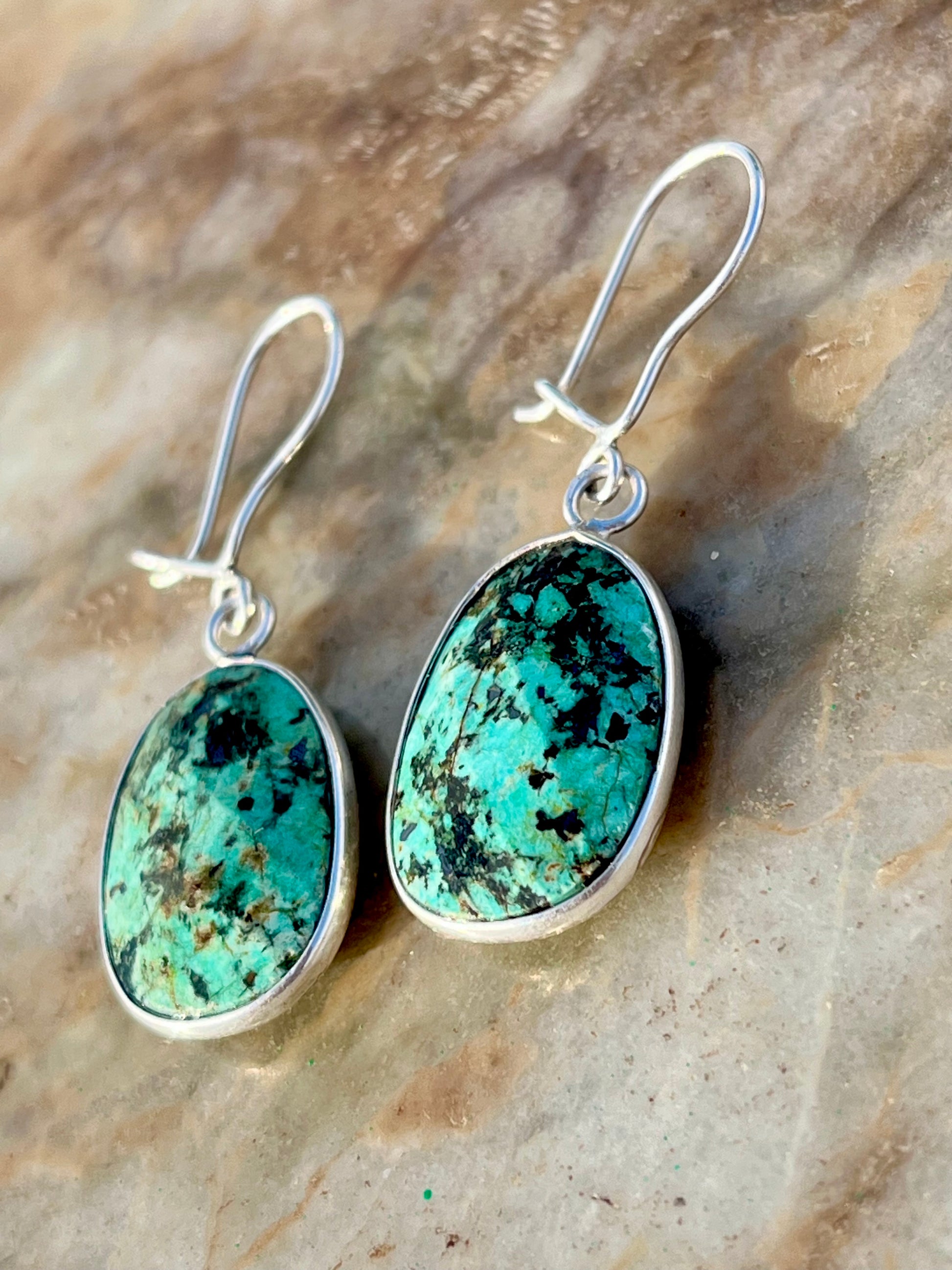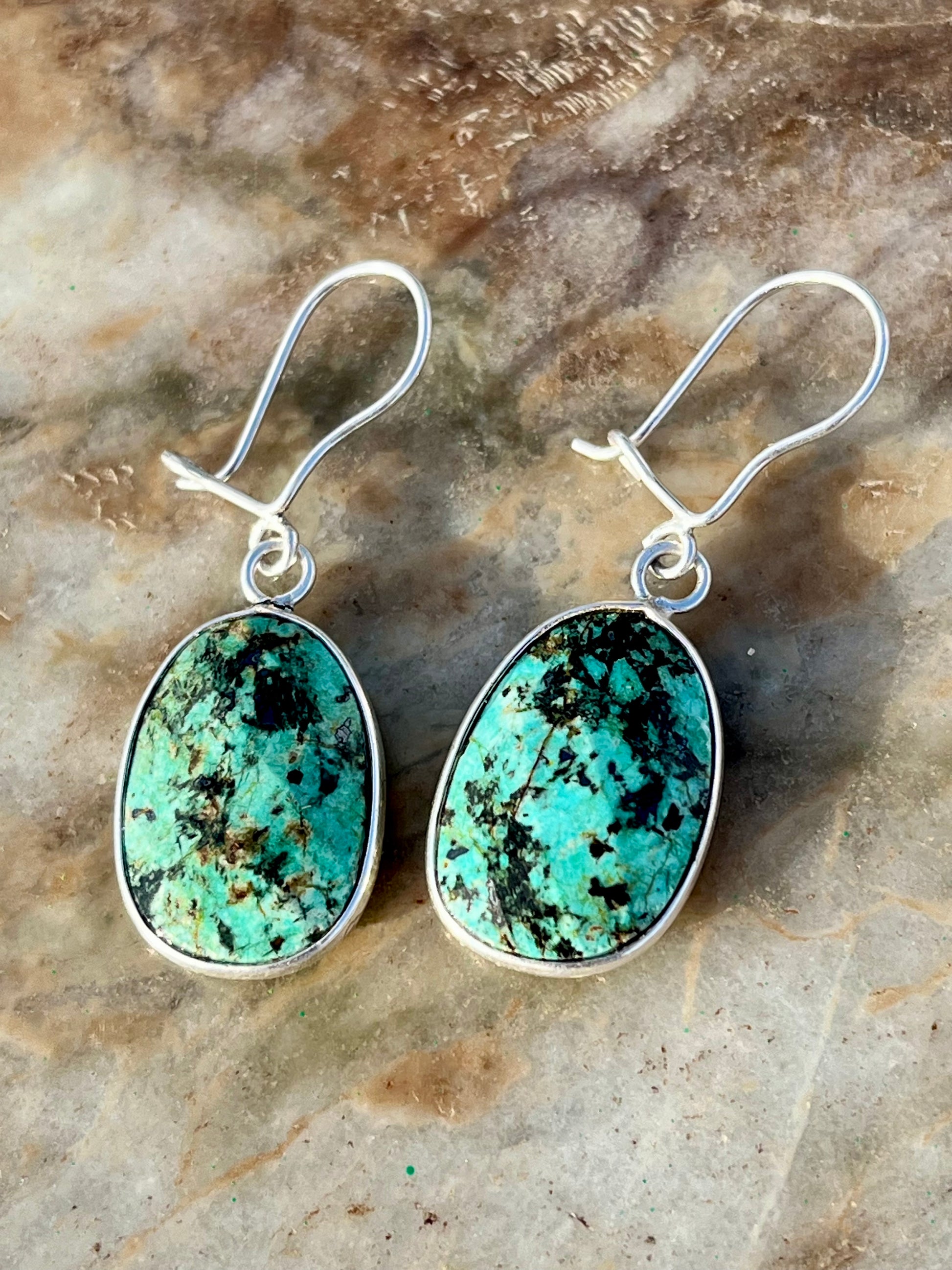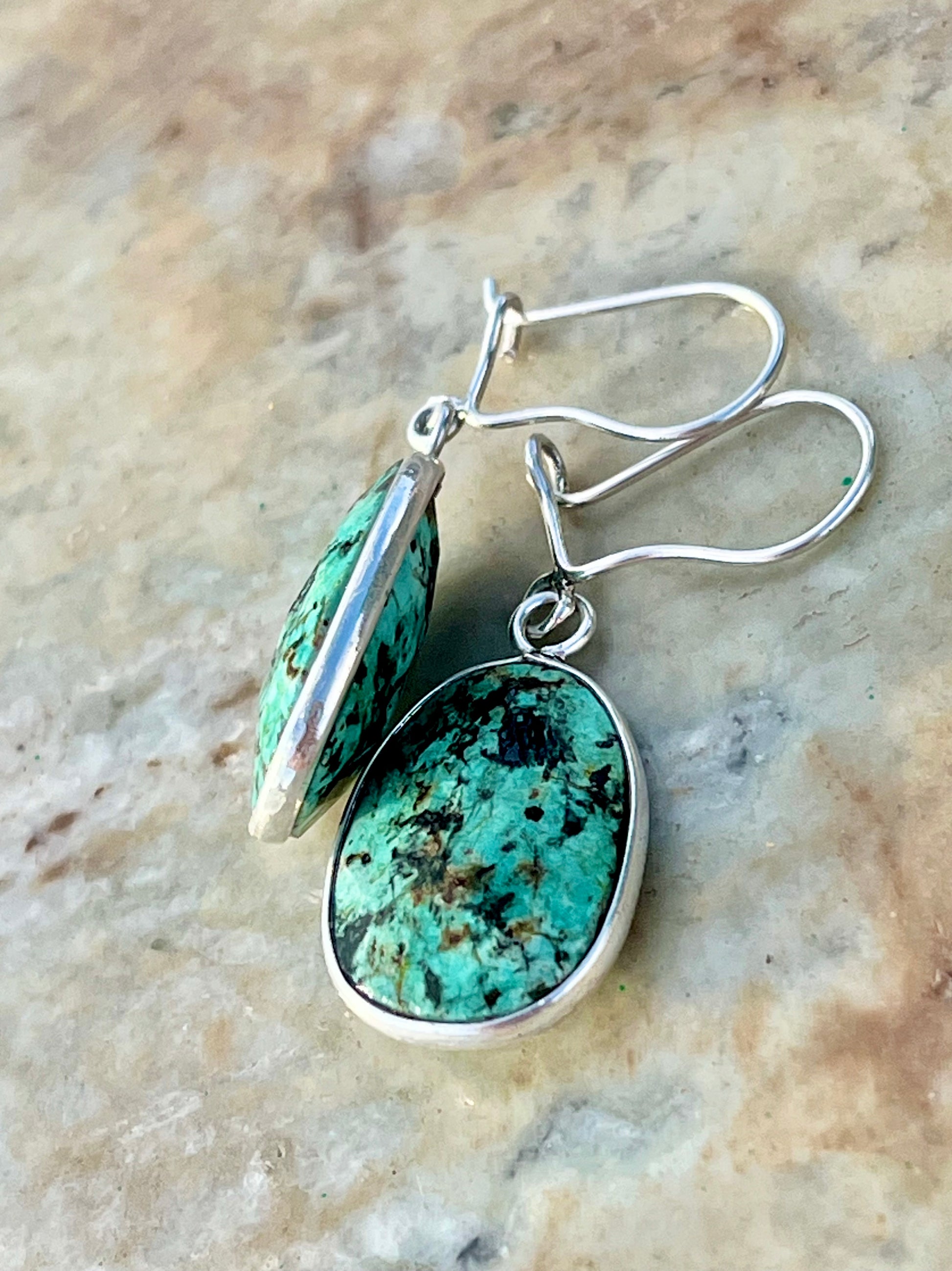 حلق فضة بحجر فيروز افريقي أصلي