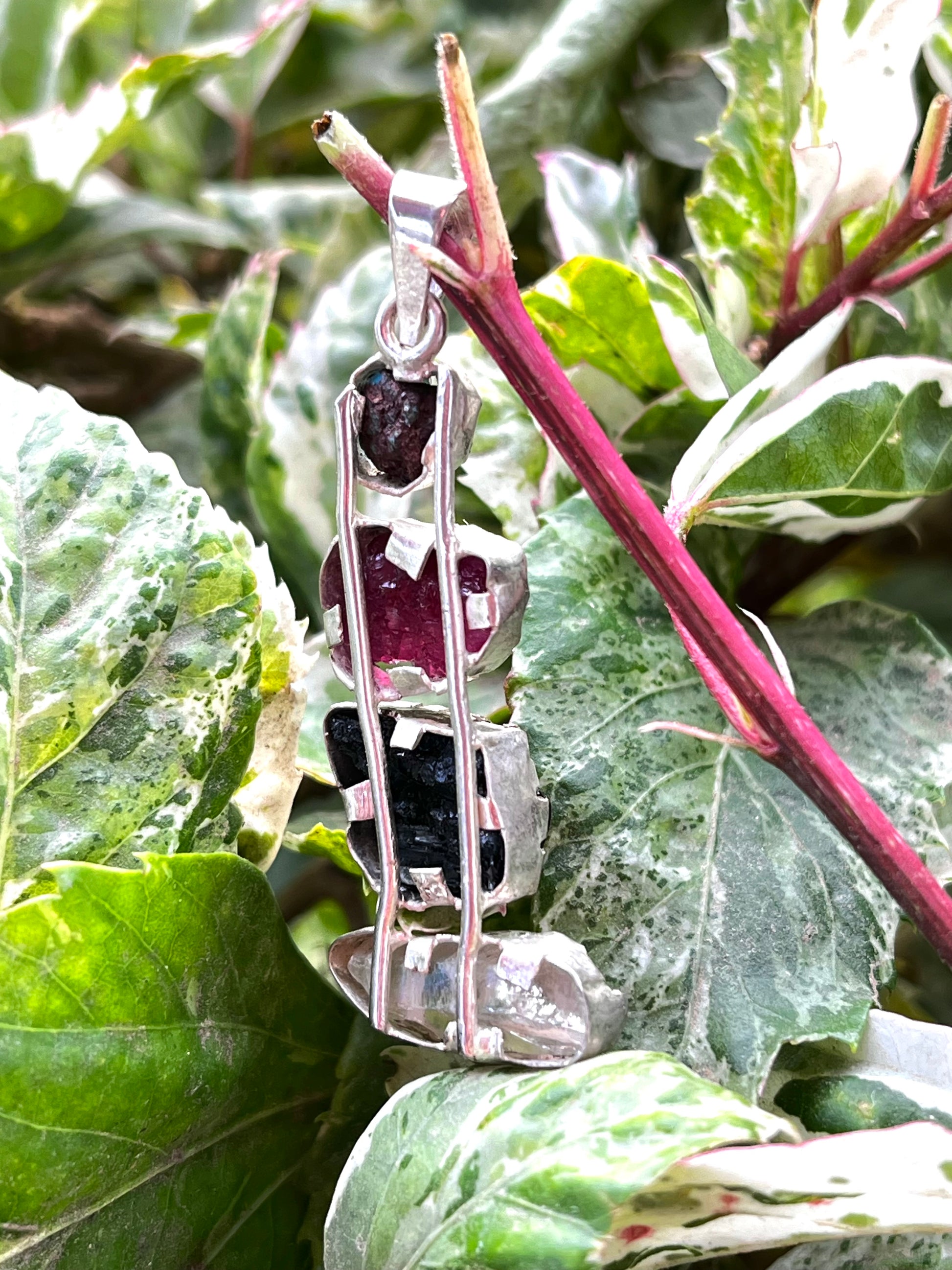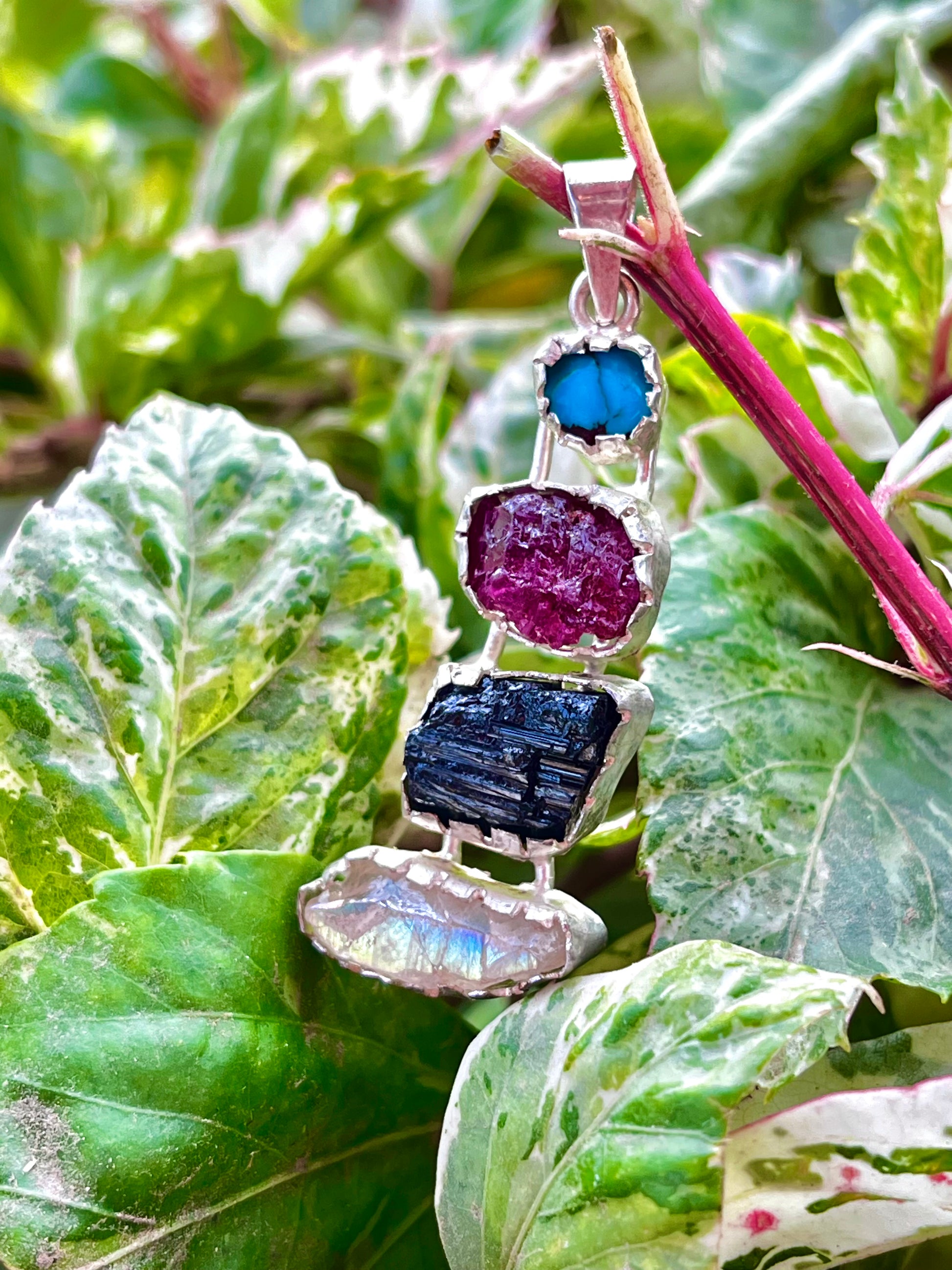 دلاية فضة بأحجار فيروز وياقوت وتورمالين وكوارتز أصلية