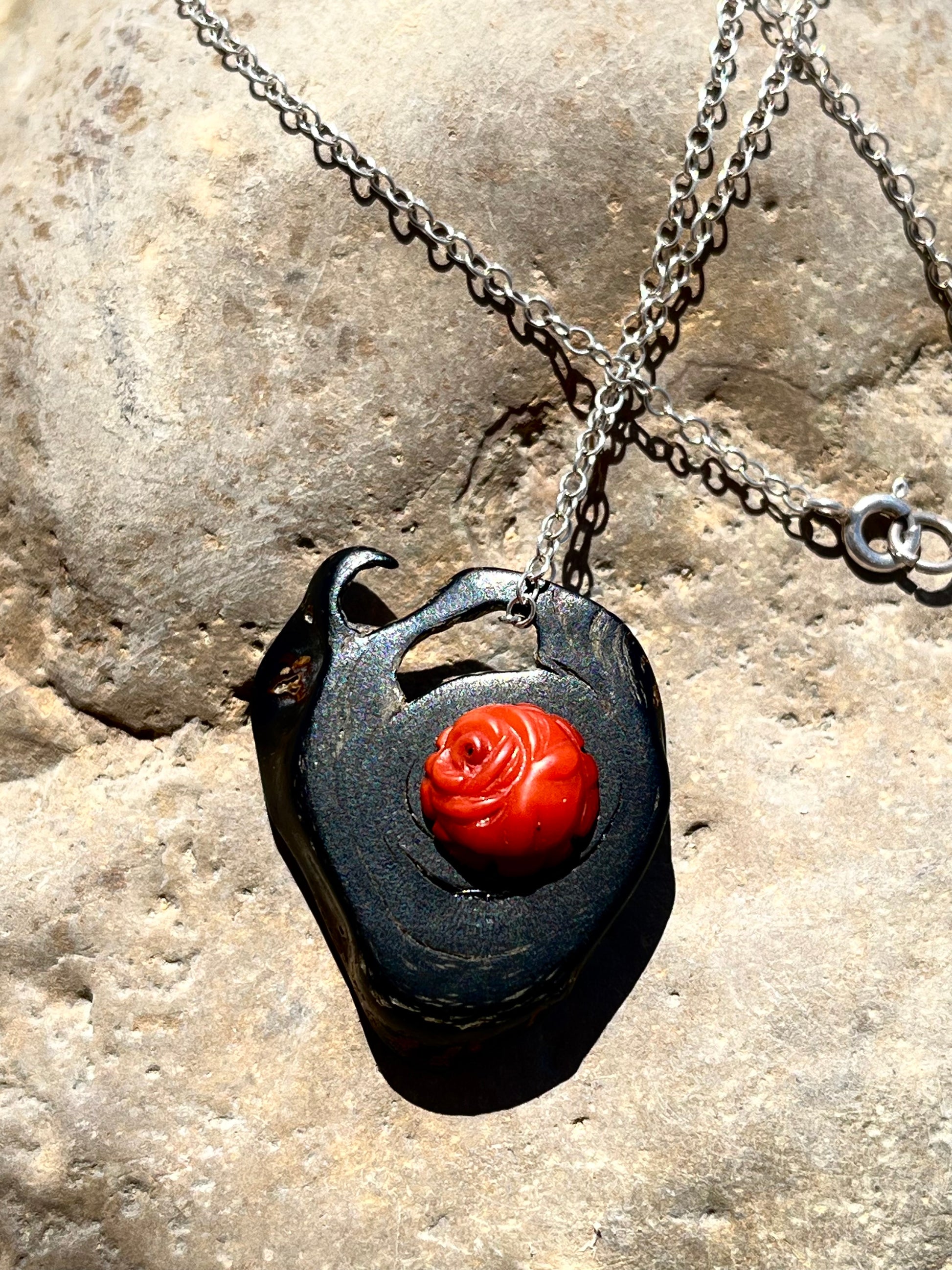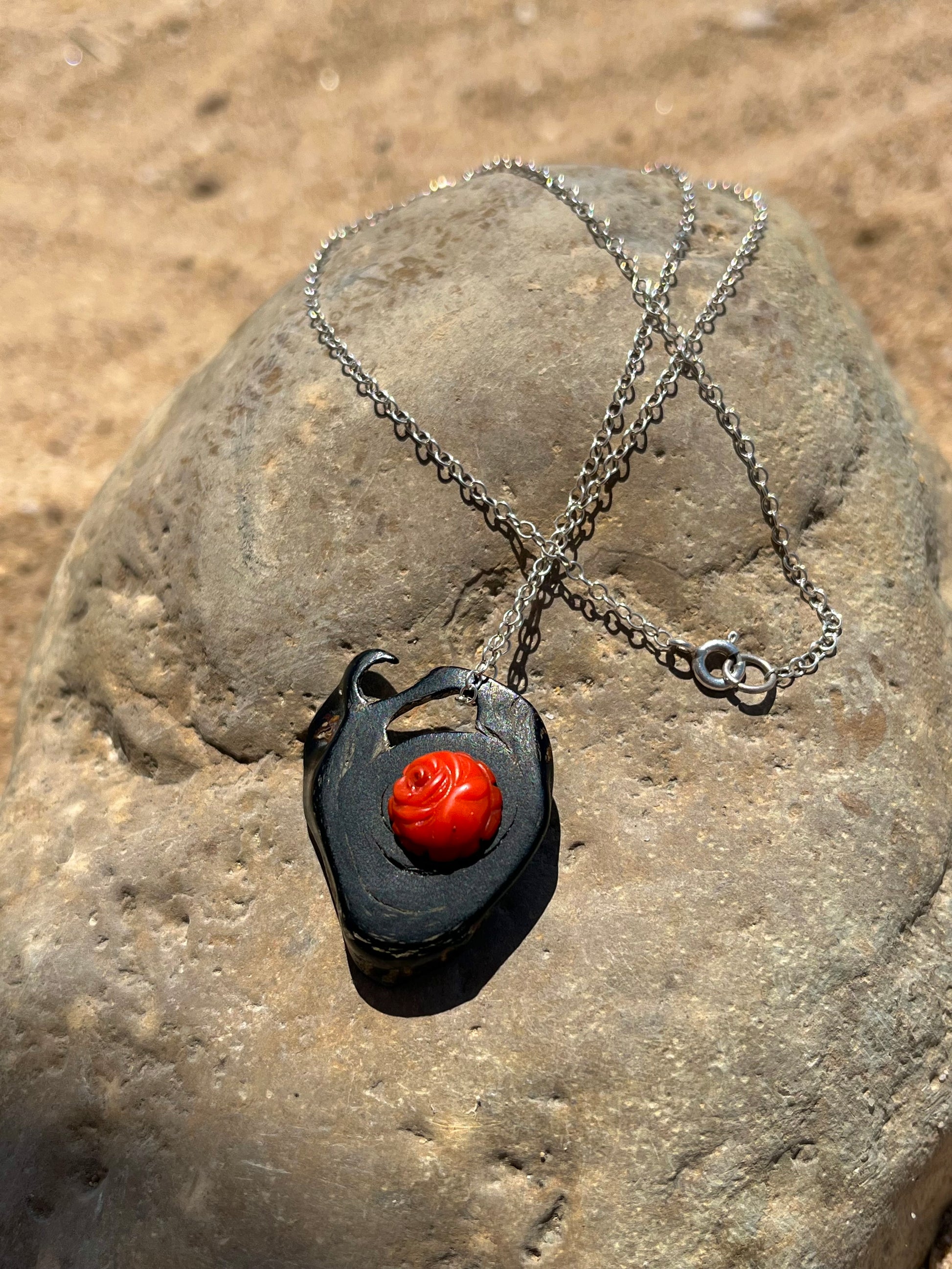 مرجان ايطالي احمر طبيعي منحوتة ورد هاند ميد