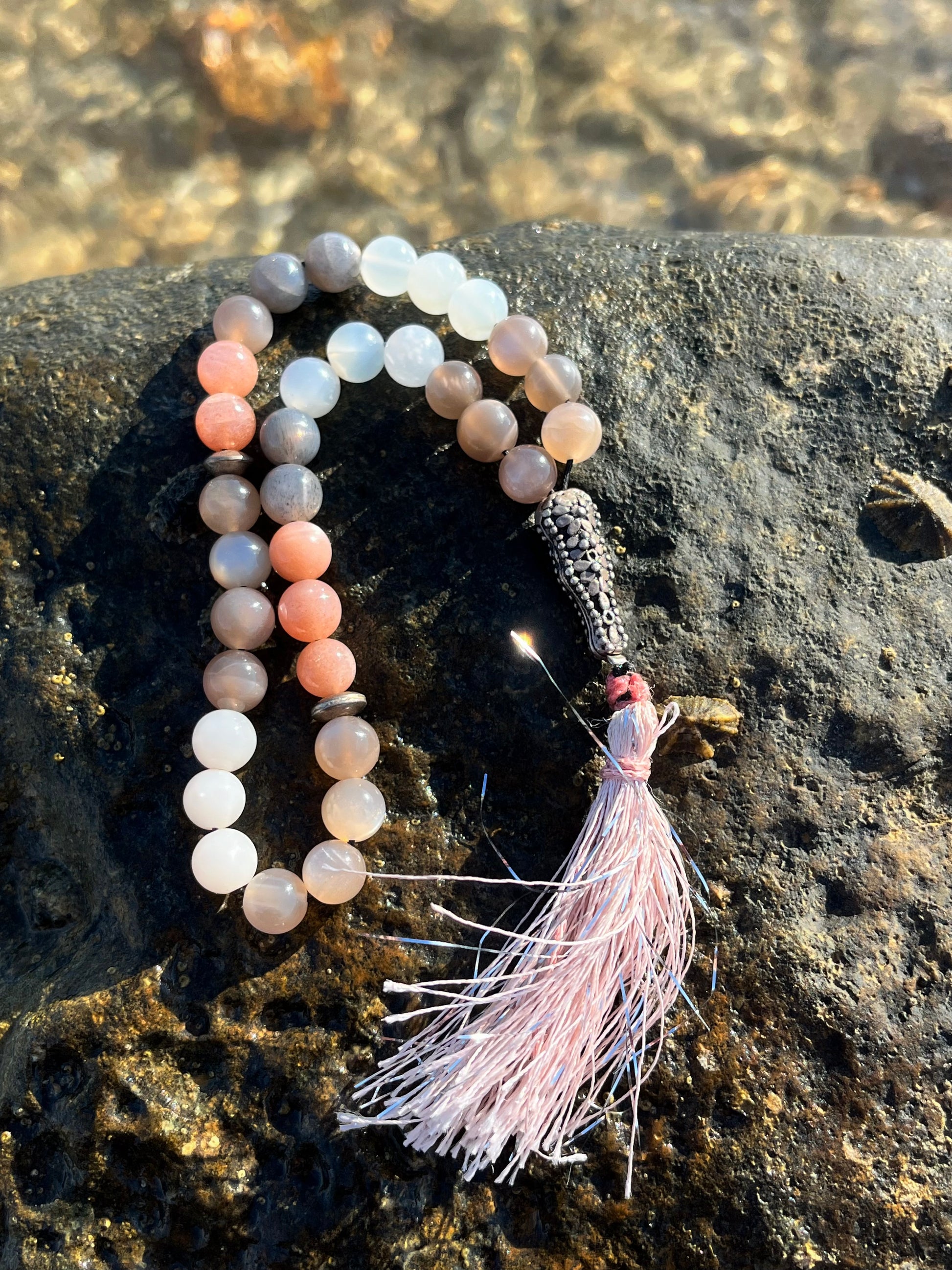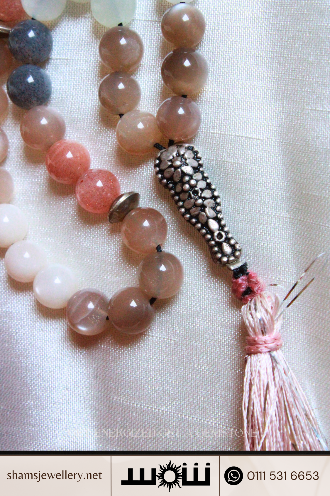 سبحة حجر القمر المذهلة أحجار كريمة أصلية