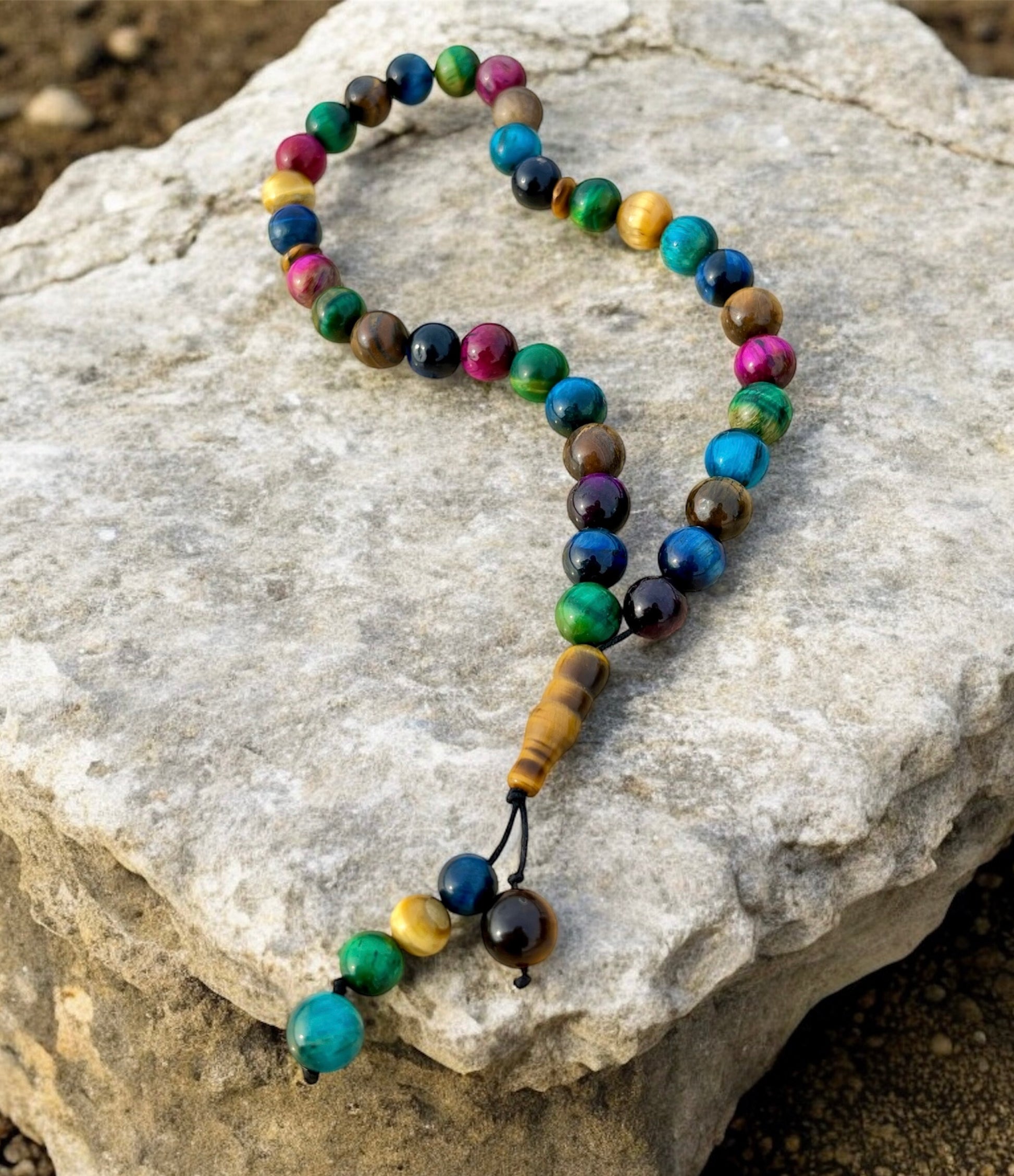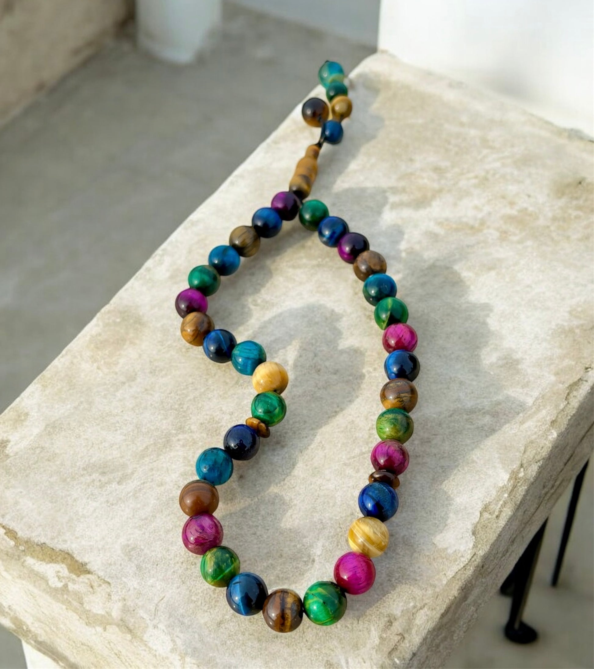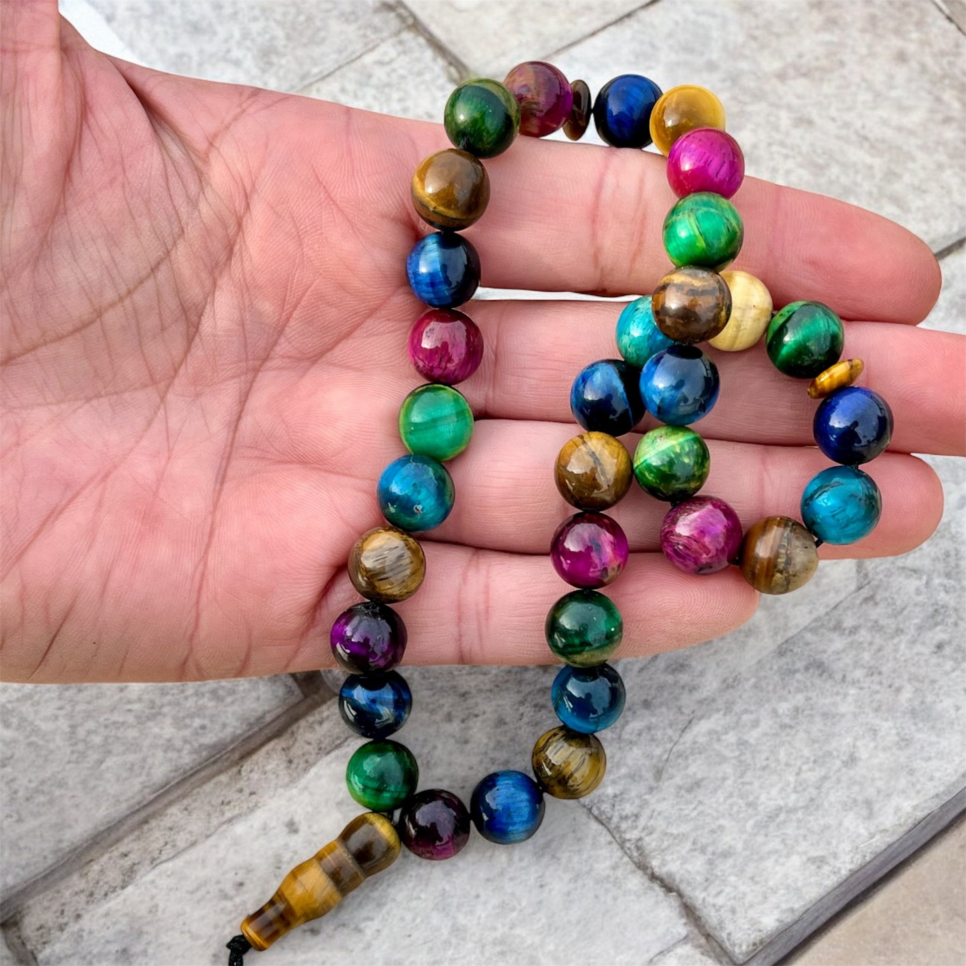 السبحة بالكامل أحجار عين النمر الأصلي بجميع أنواعه وألوانه -حجر طبيعي شعاع قوي جدا ملفت