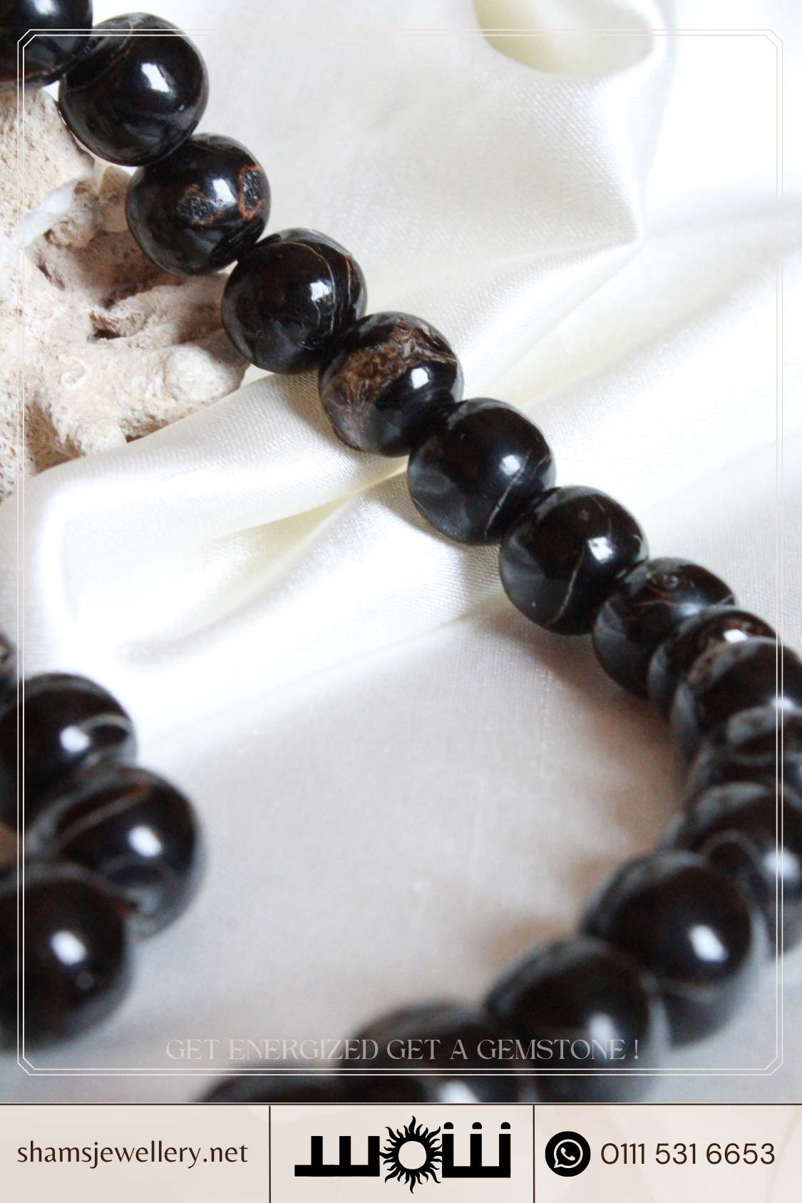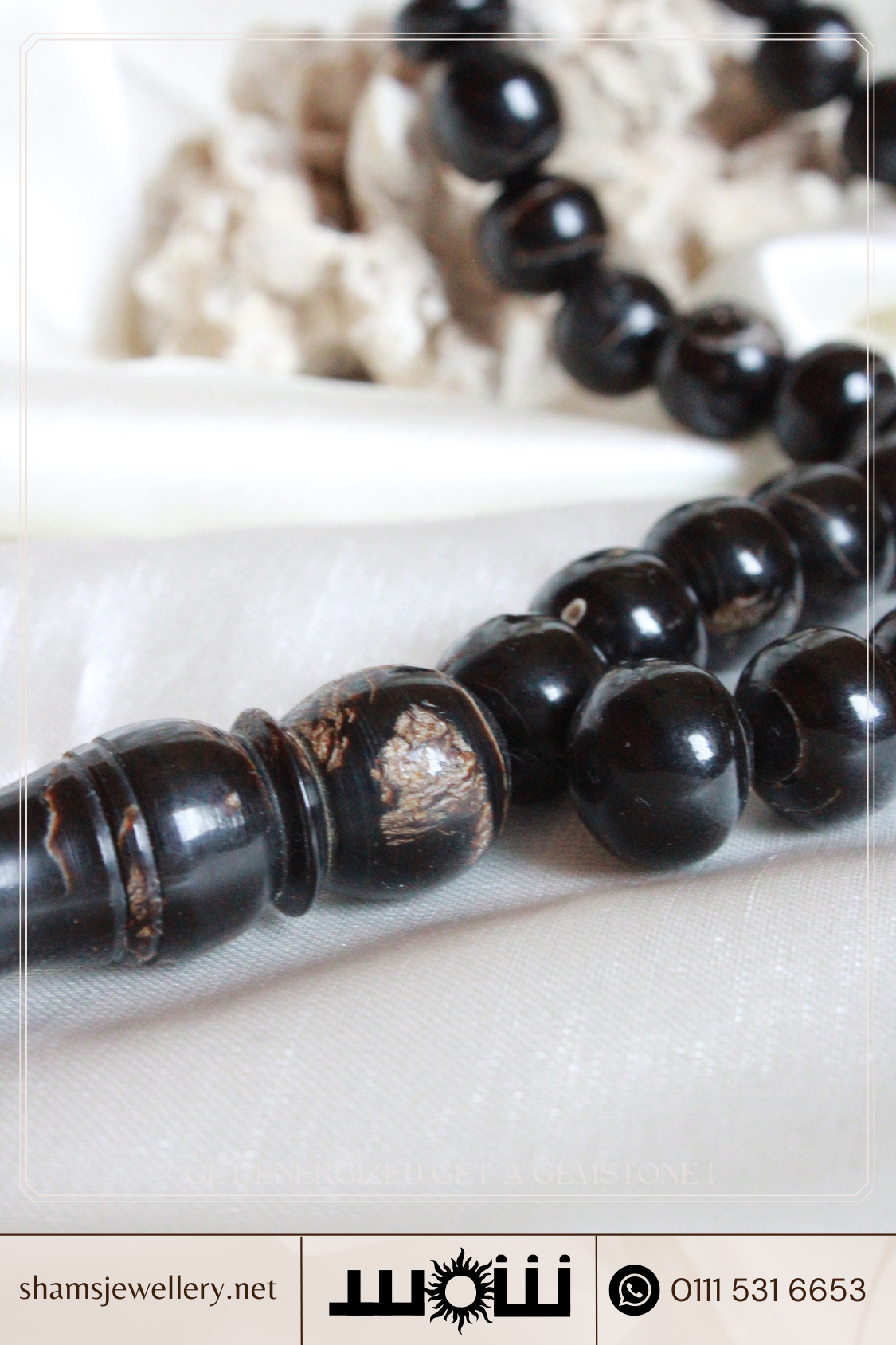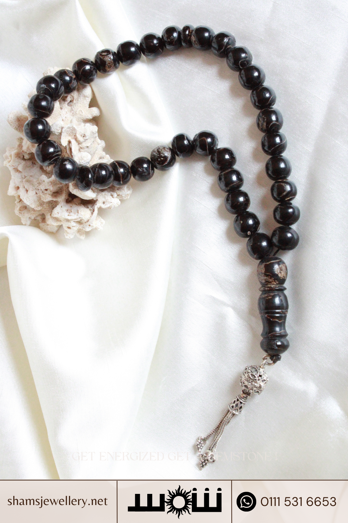سبحة منتهى الفخامة والتميز يسر/مرجان اسود طبيعي بتوريق دهبي واضح قوي لامع وهر ما يزيده قيمة وجمال
