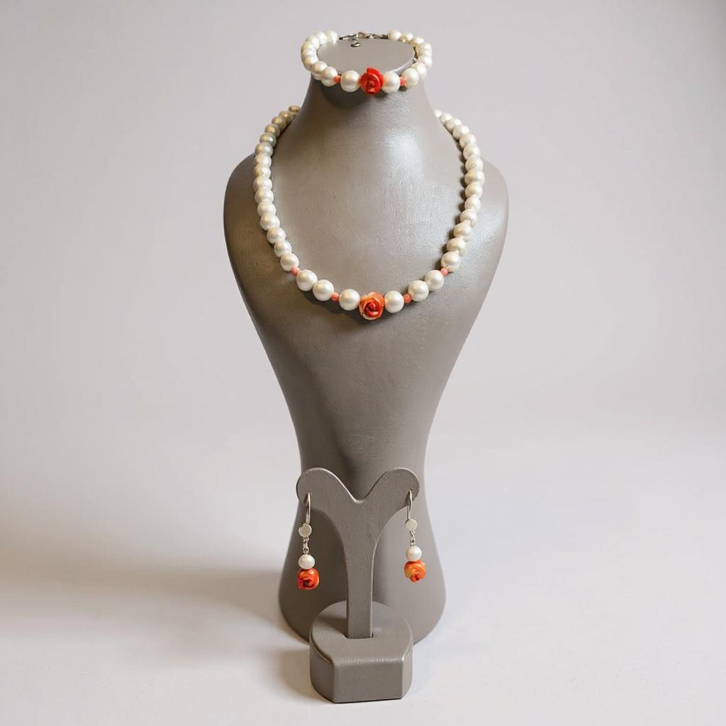 طقم ملكي لؤلؤ ومرجان ايطالي وفضة