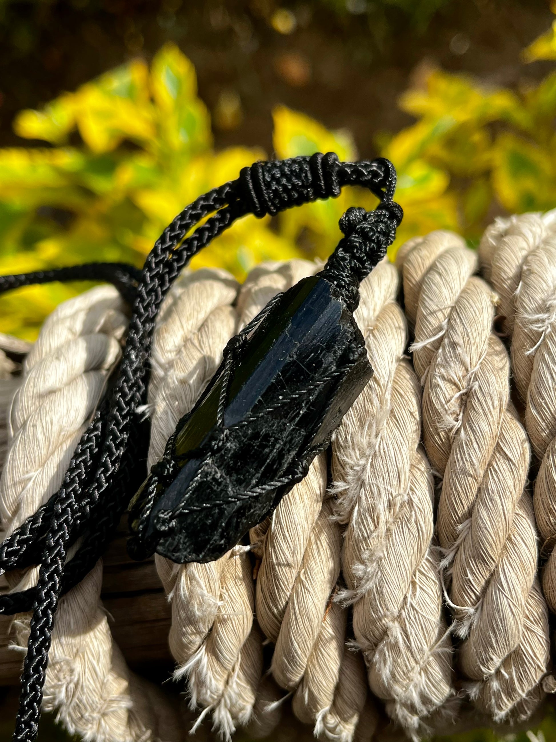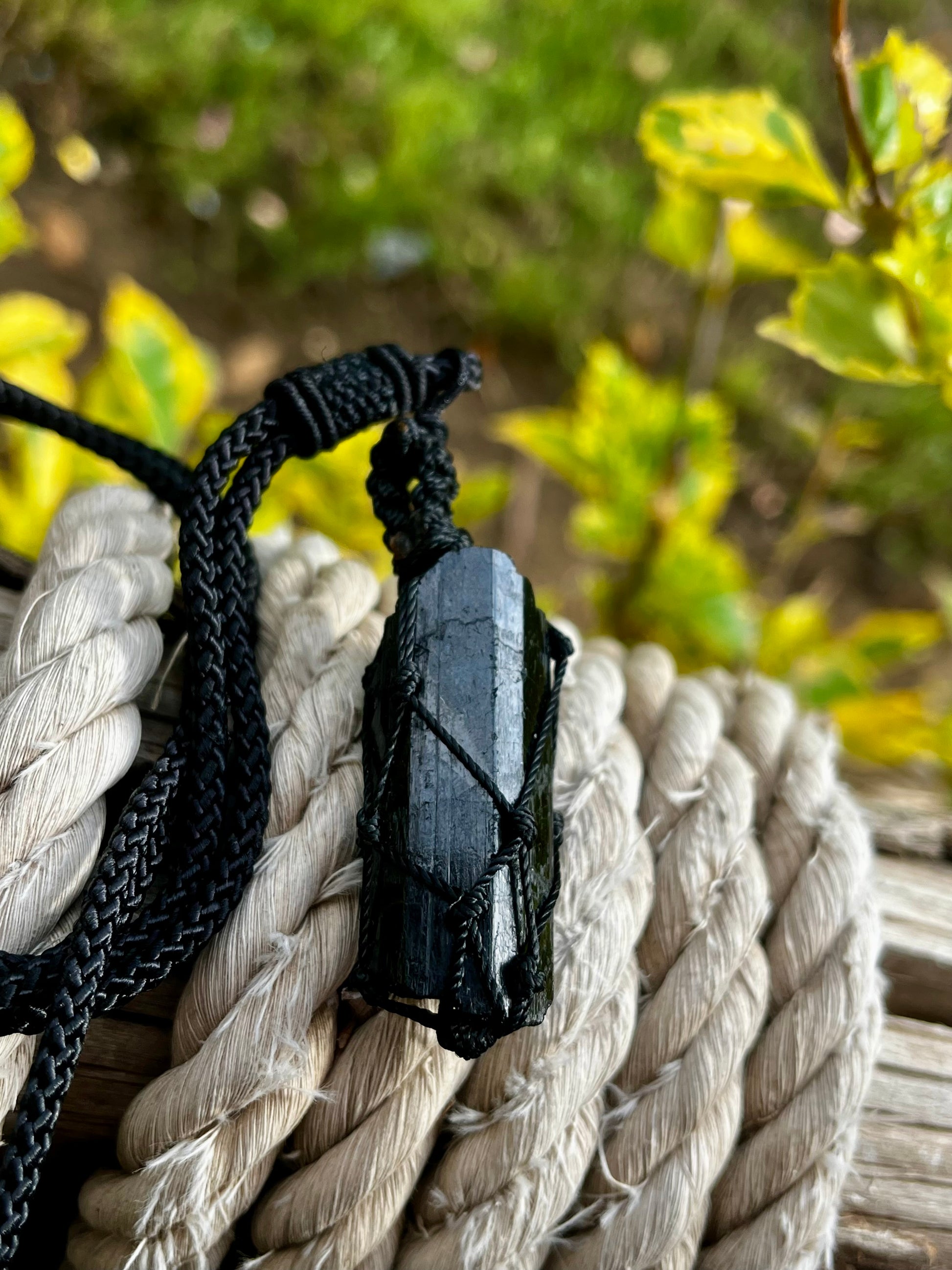 عقد فخم للجنسين بحجر تورمالين أسود كبير-ضخم