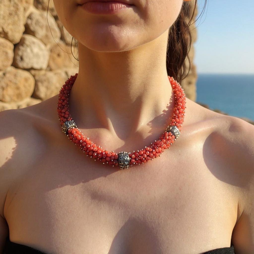 عقد فخم مرجان تونسي أصلي وفضة