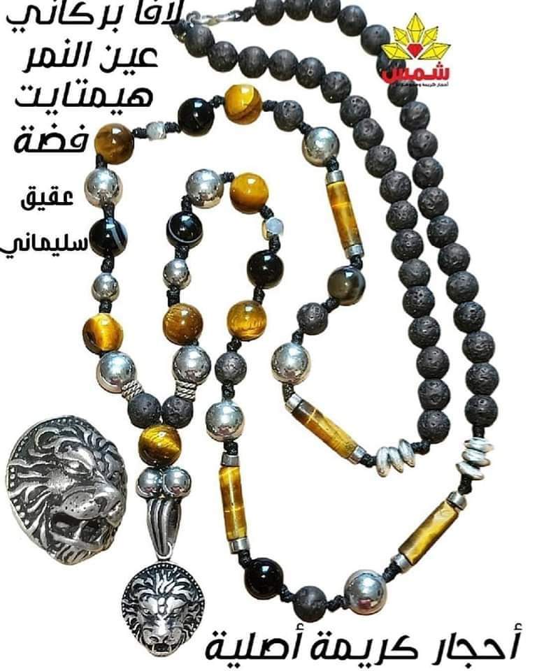 عقد رجالي فضة وأحجار كريمة