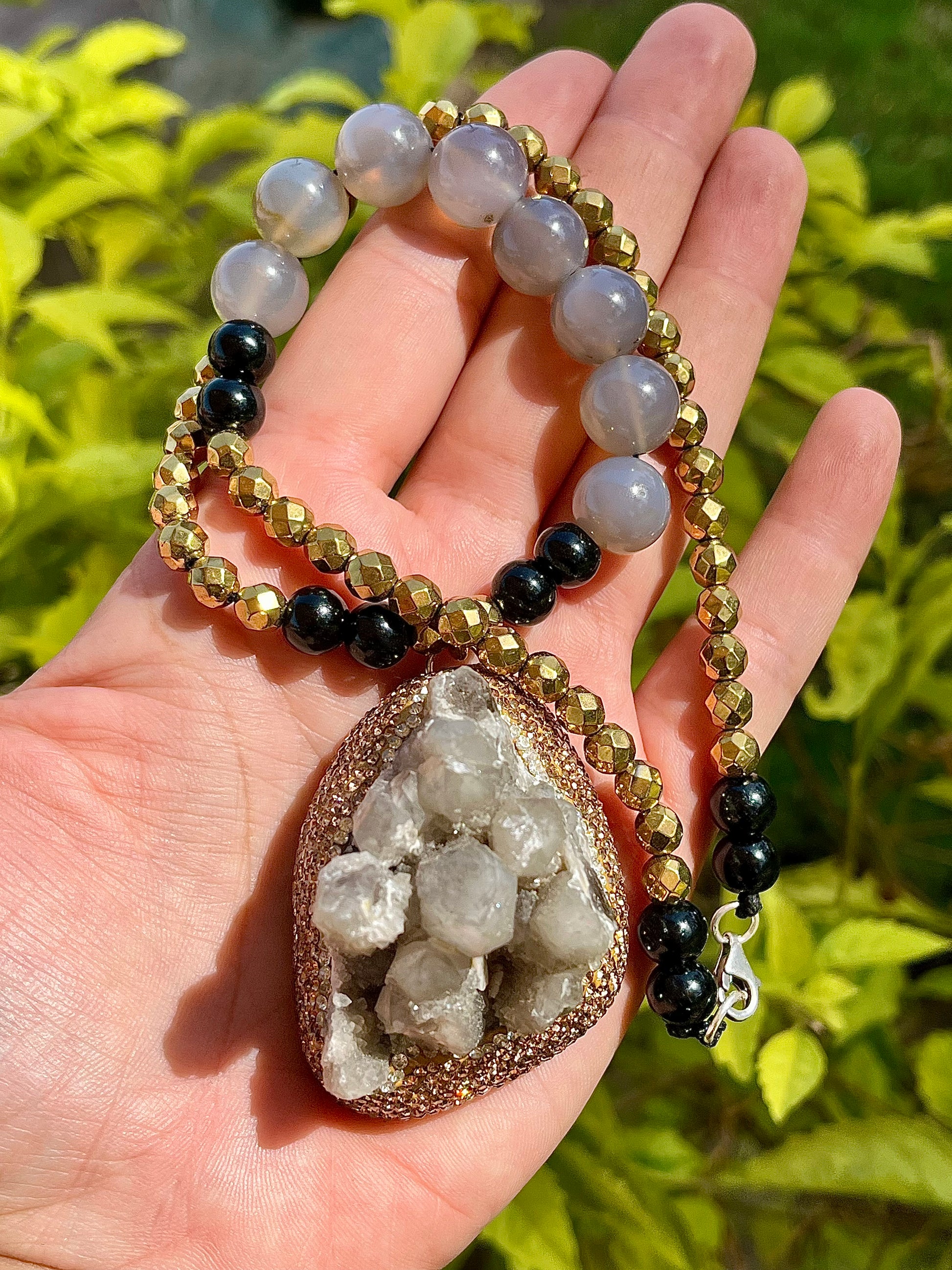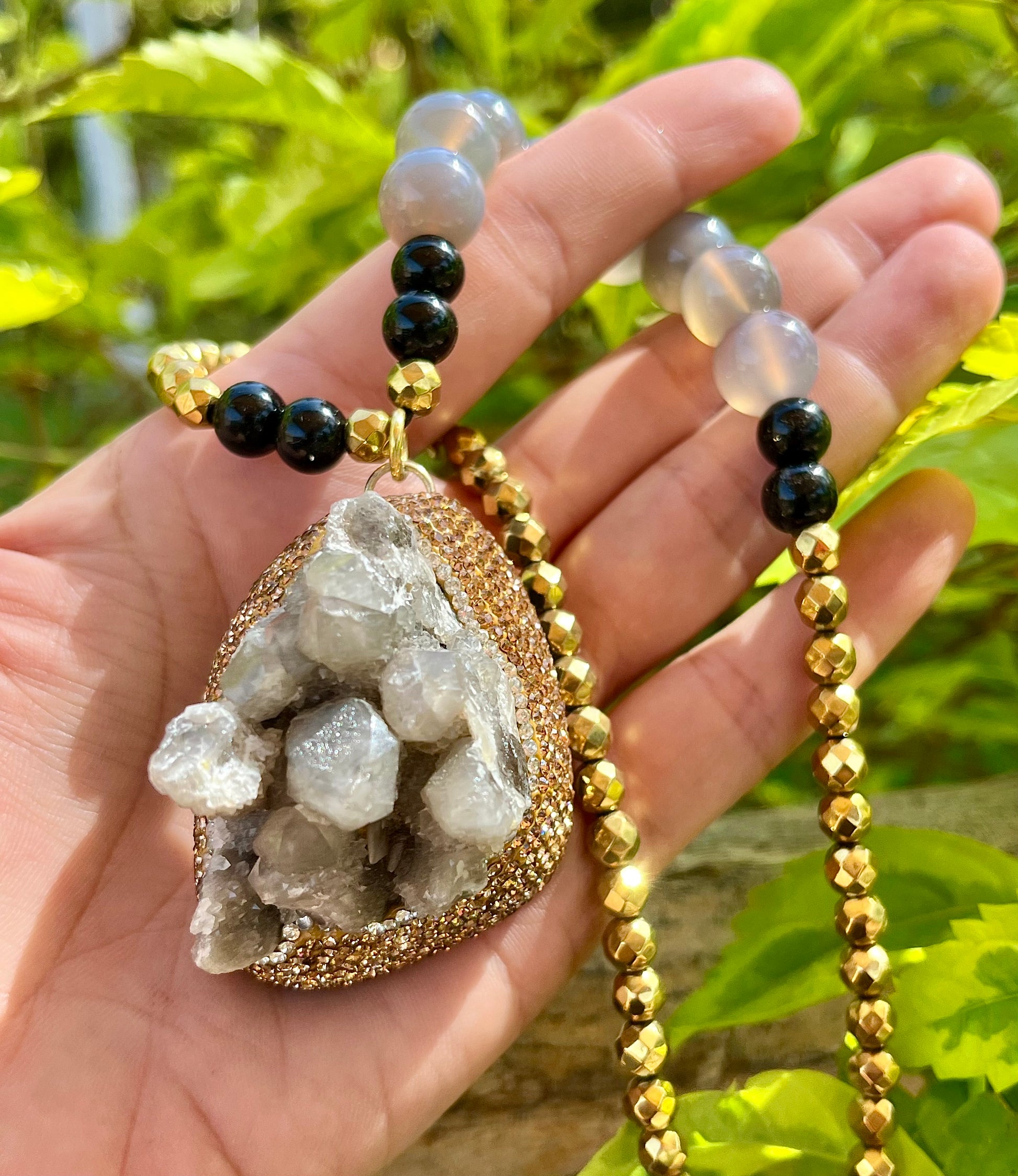 دلاية مميزة عقيق طبيعي والحجر خام بنفس حالة استخراجه من باطن الصخور والجبال - محاطه بجواهر ميكروزركون دهبي متألقة
