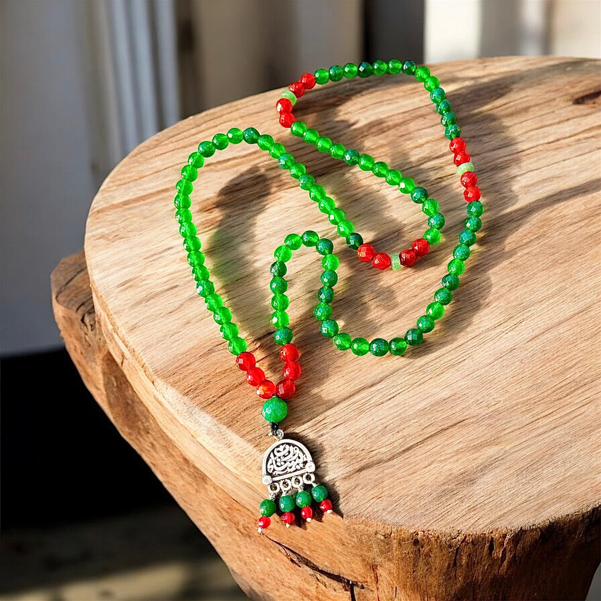 عقد وسبحة 100حبة عقيق اصلي وفضة