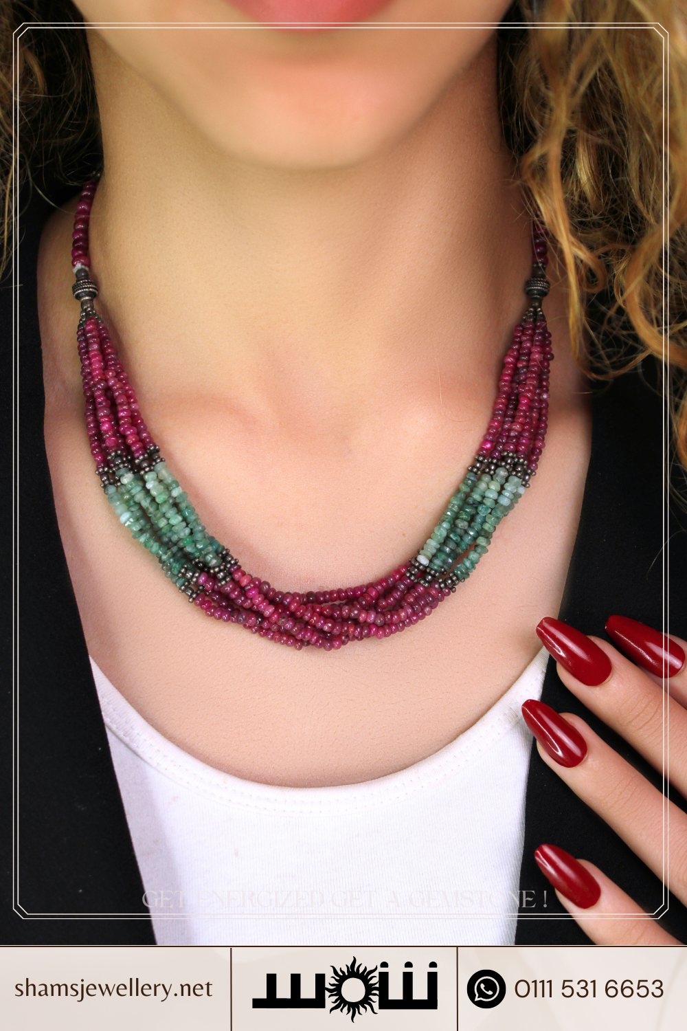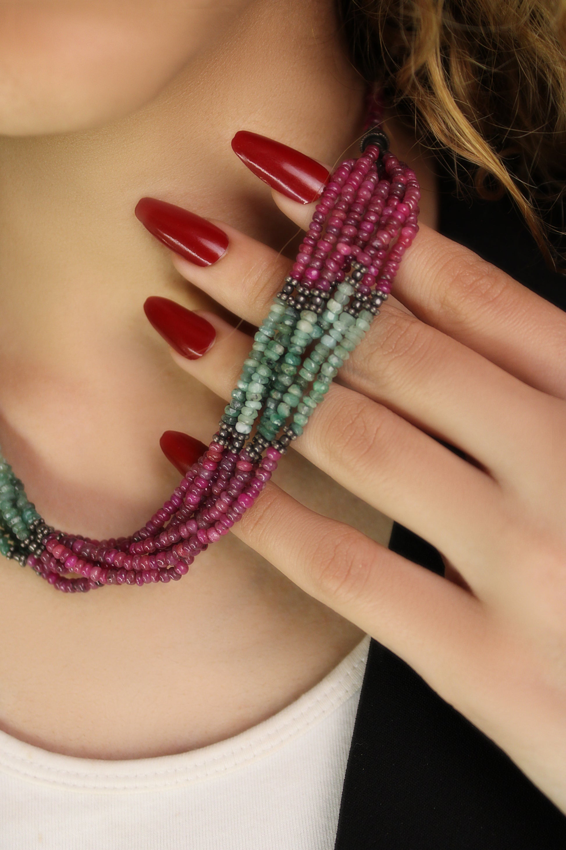 جواهر ياقوت وزمرد وهما الأكثر جاذبية في تصميم راقي
