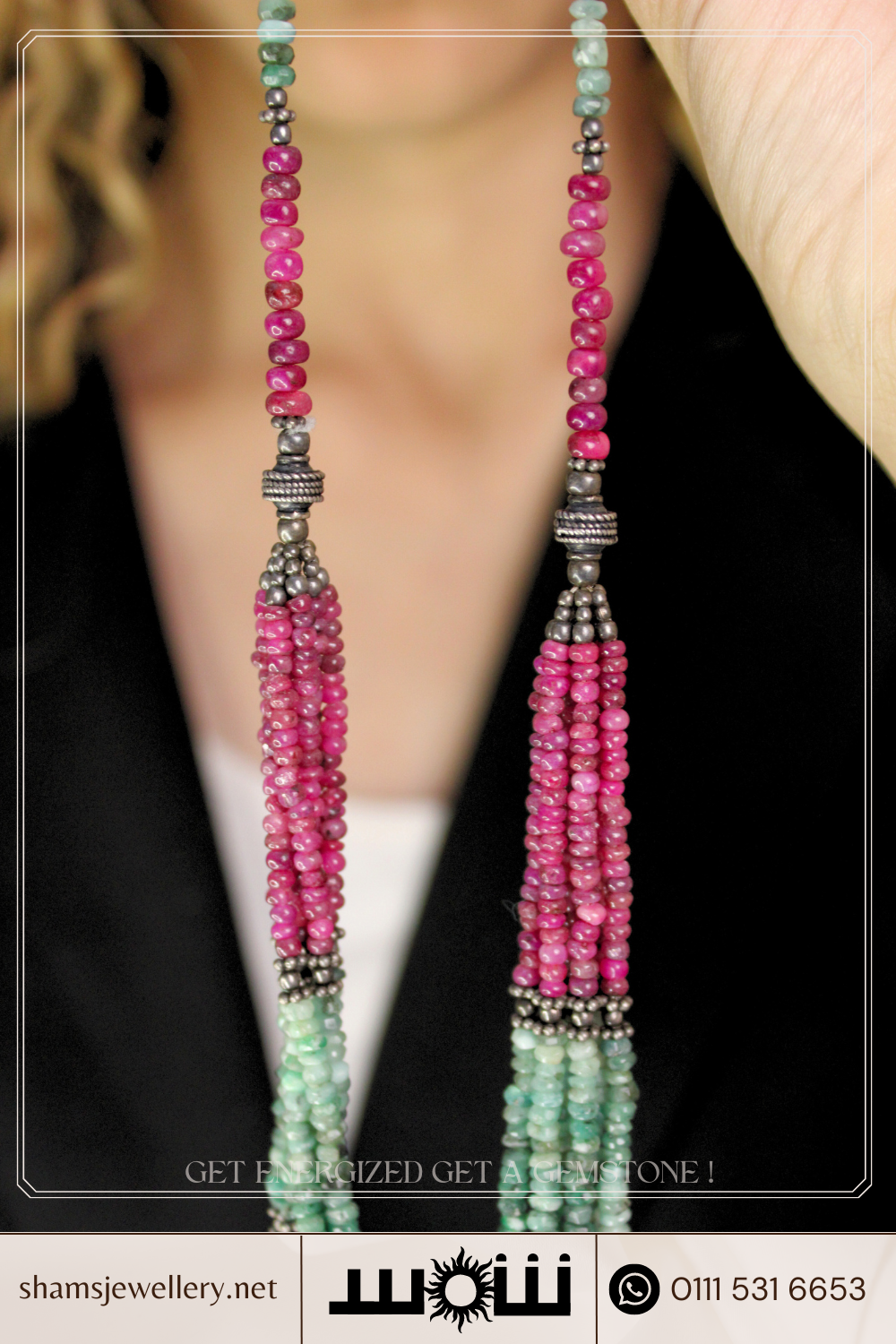 عقد مذهل غني بأثمن وأشهر جواهر الأحجار الكريمة الأصلية