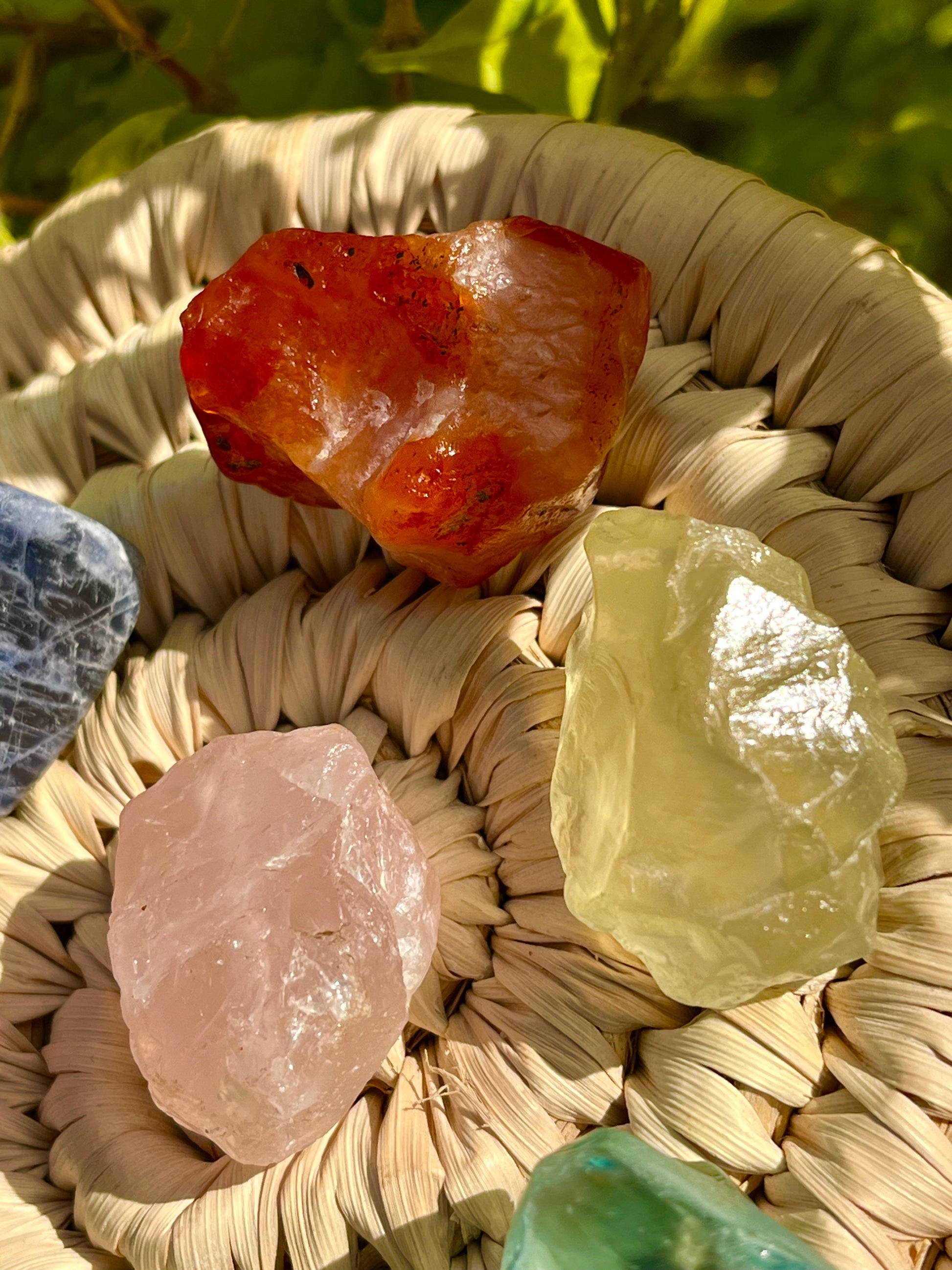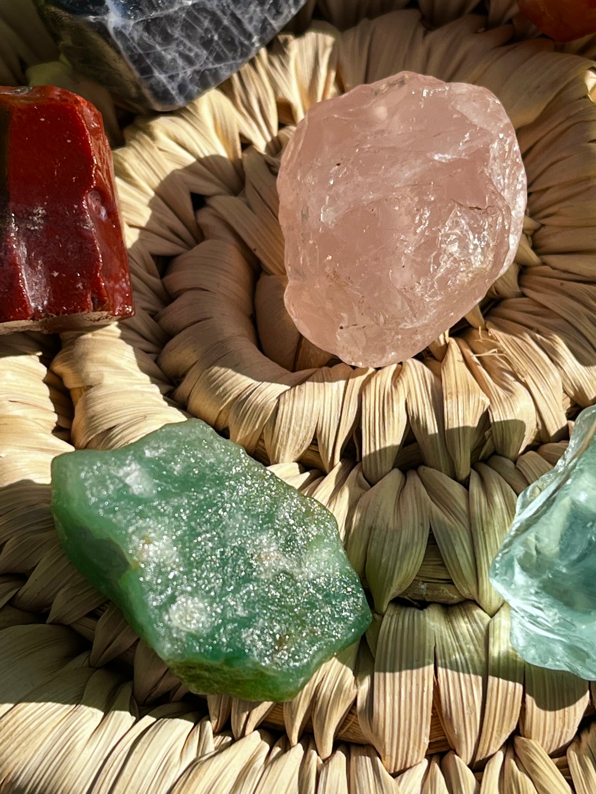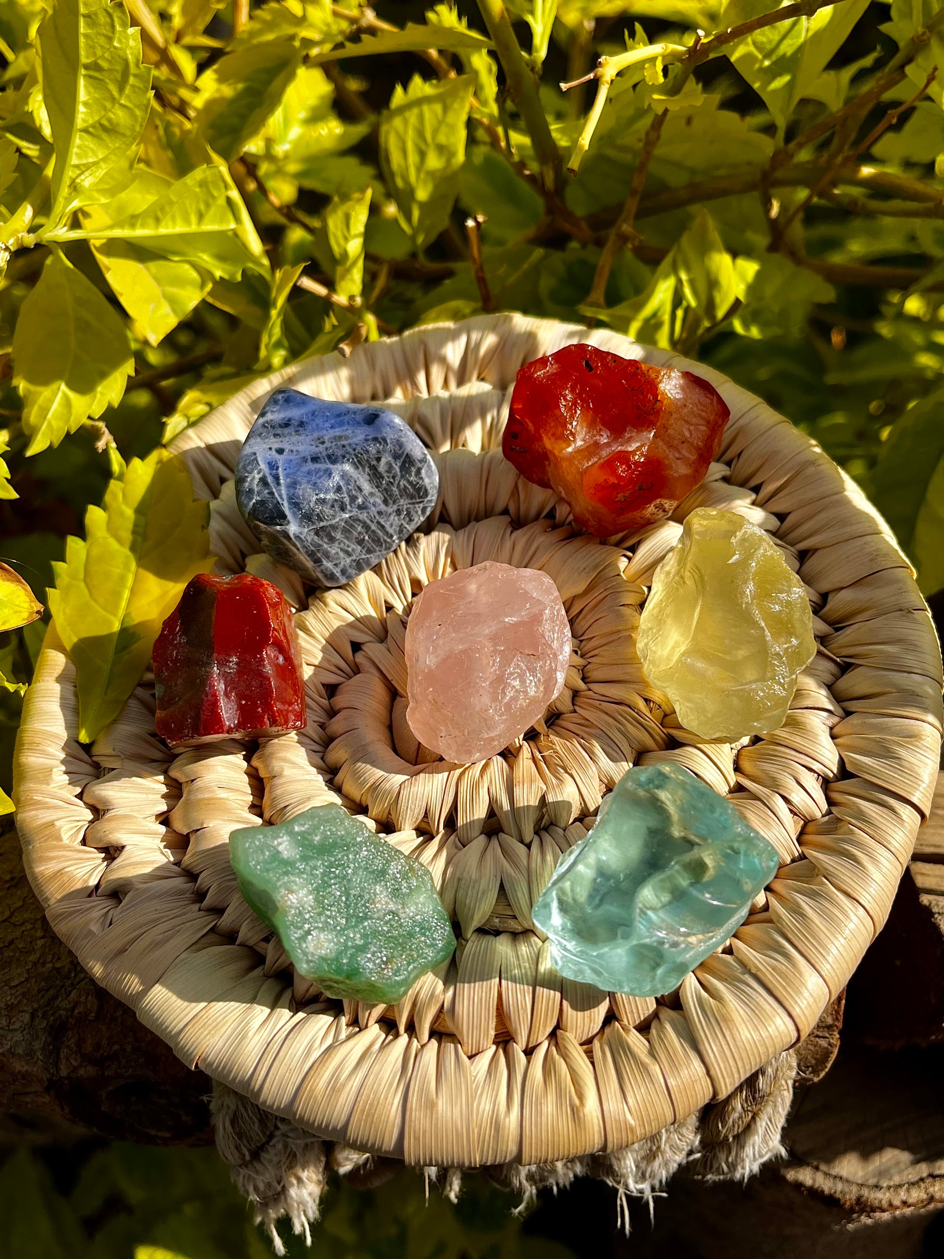 مجموعة أحجار شاكرات الطاقة السبعة+ قاعدة سلال أنيقة