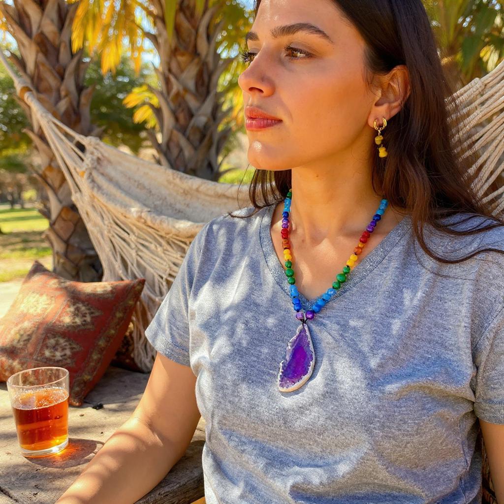 عقد شاكرات الطاقة السبعة عقيق طبيعي للجنسين