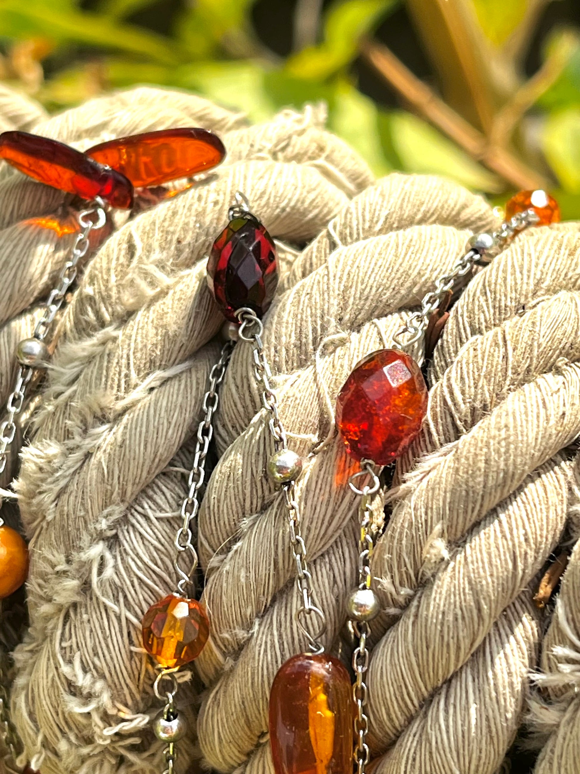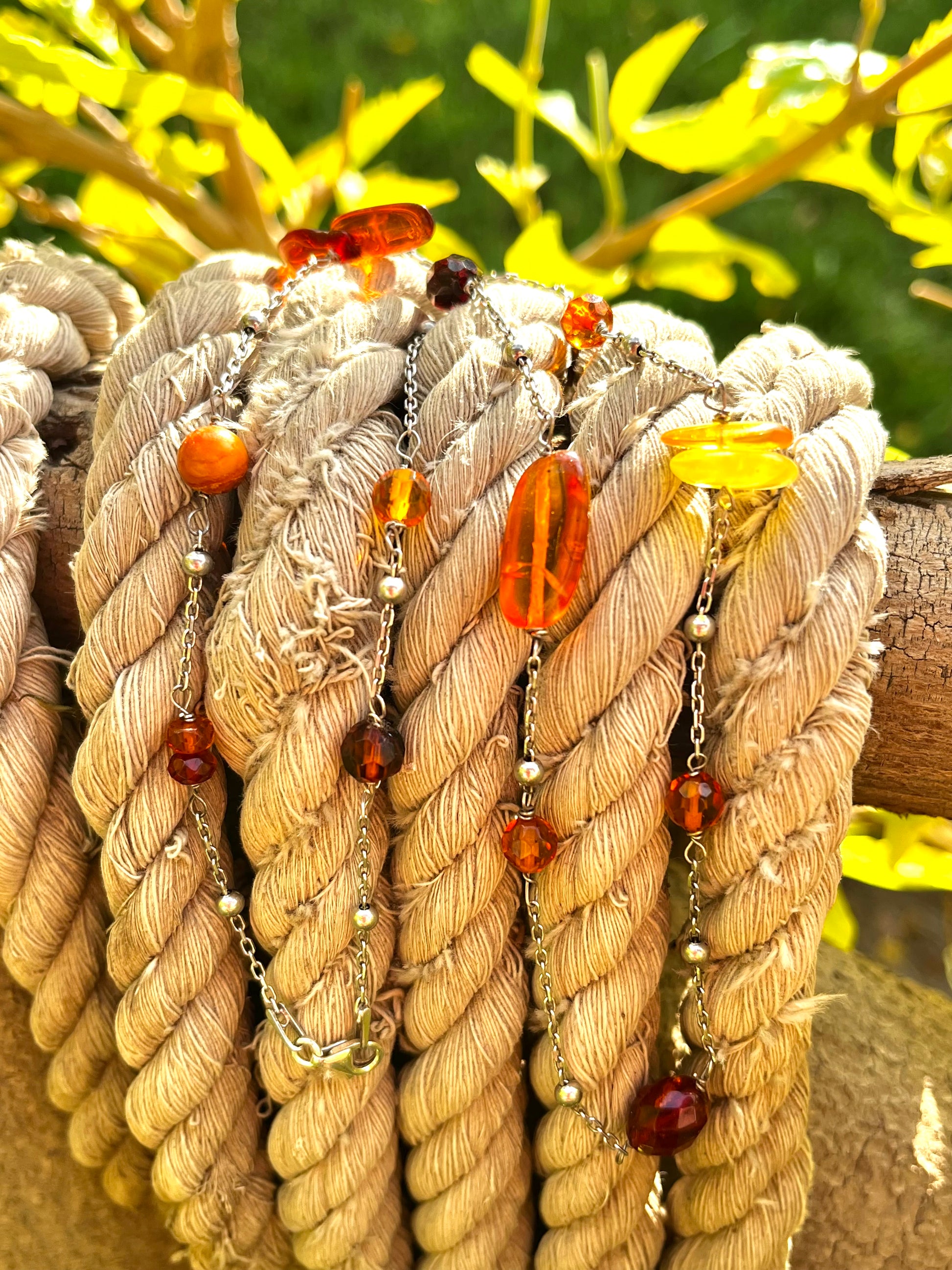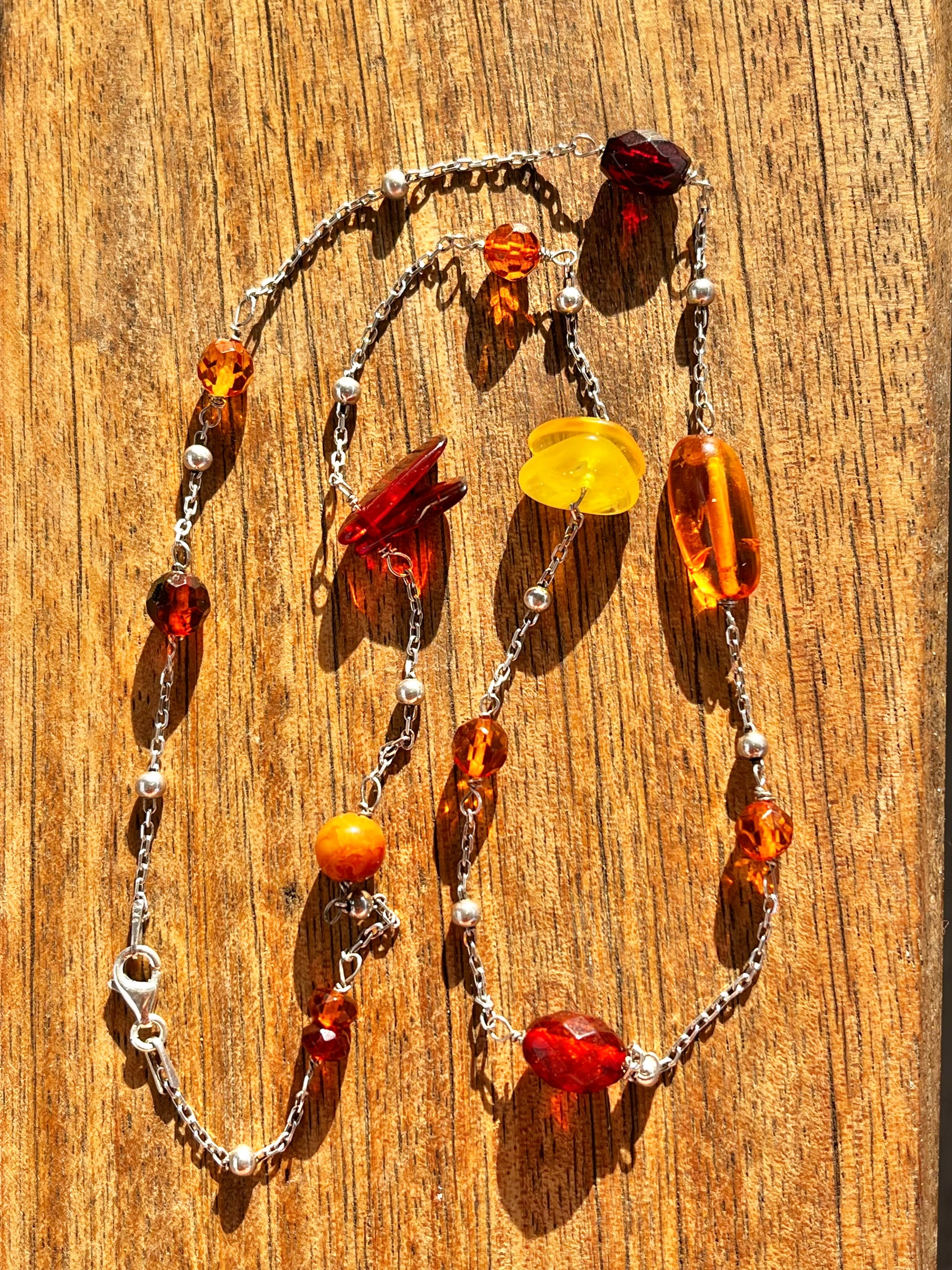 عقد كهرمان متنوع أصلي وفضة ايطالي