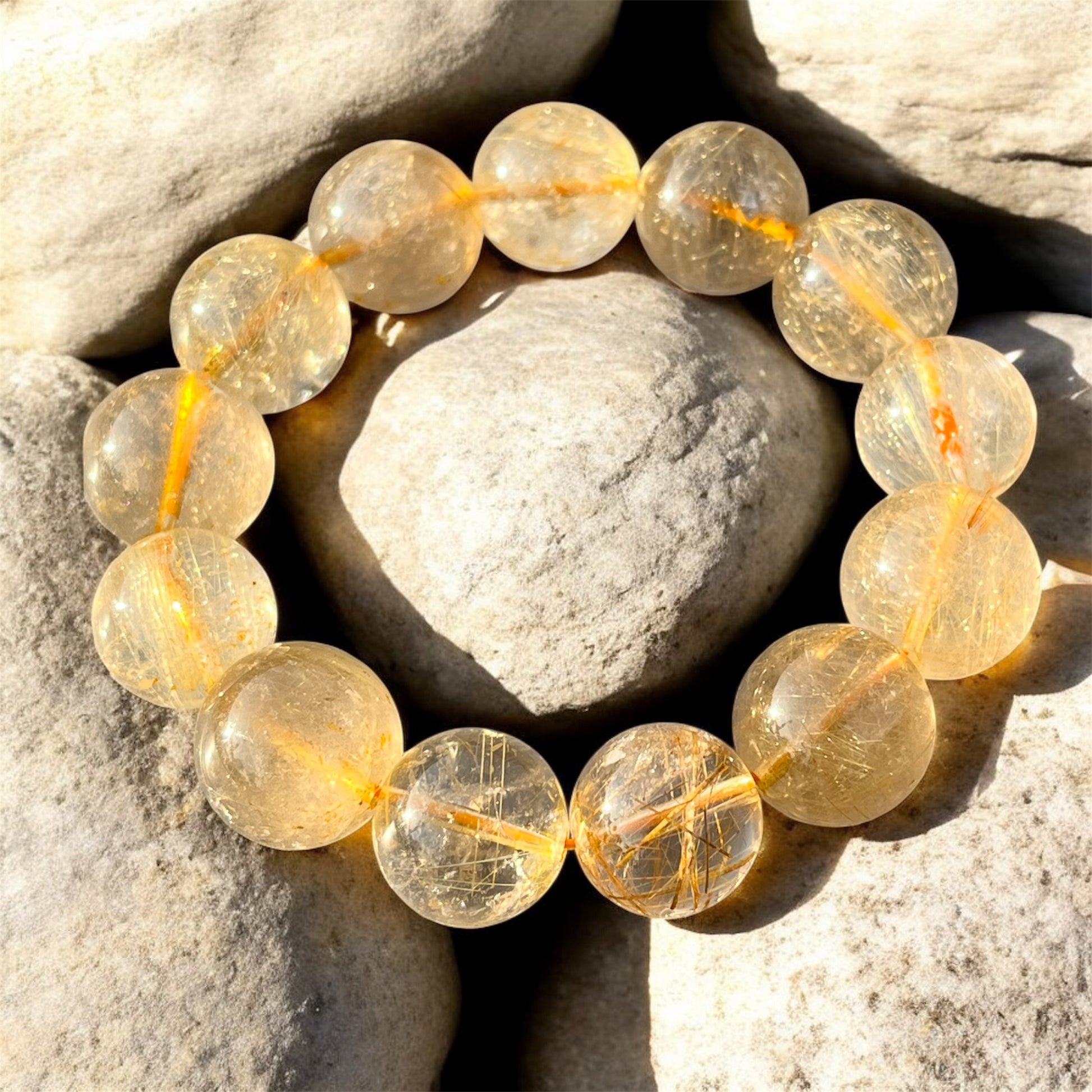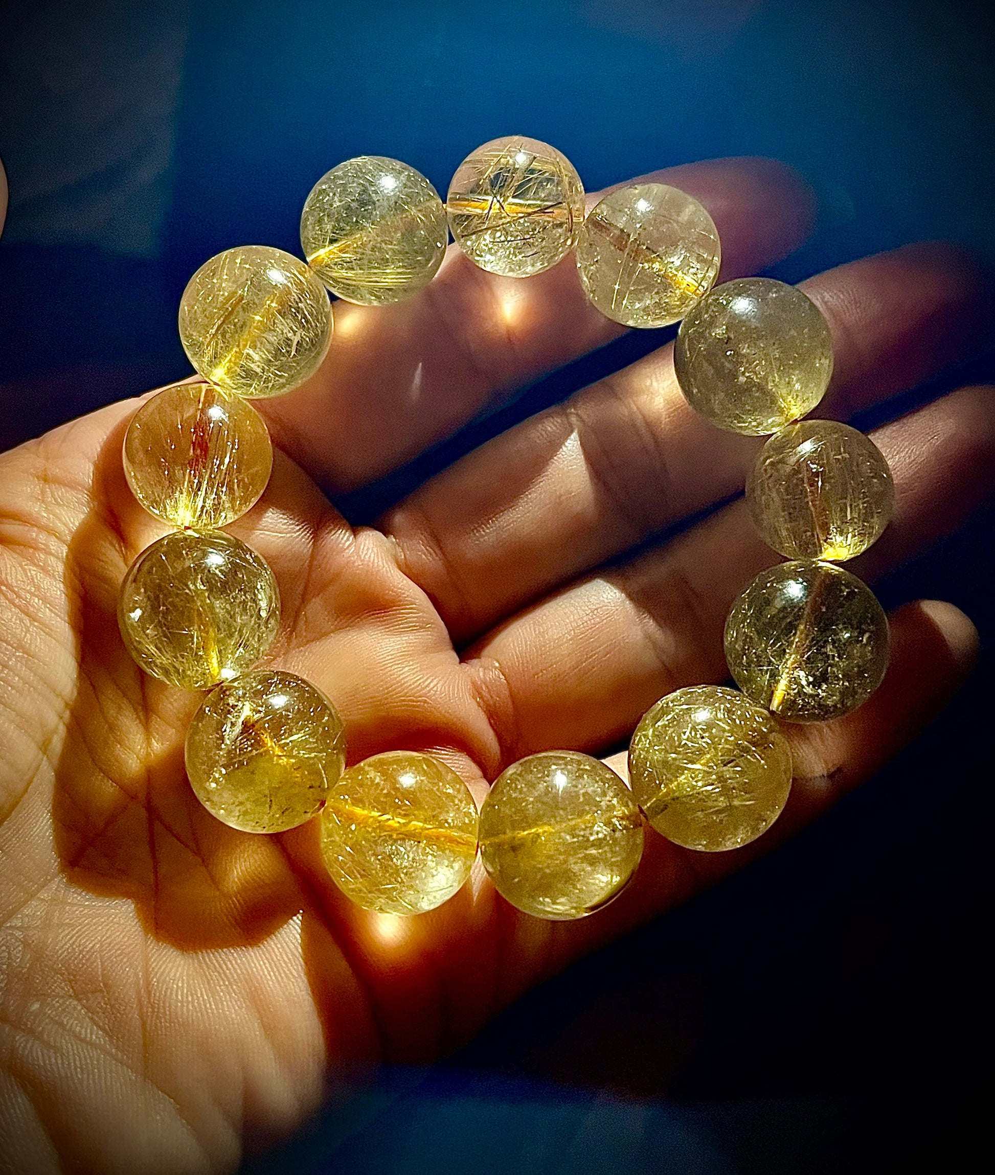 حجر روتيل كوارتز اصفر حجم نادر ضخم 16-17ملليمتر