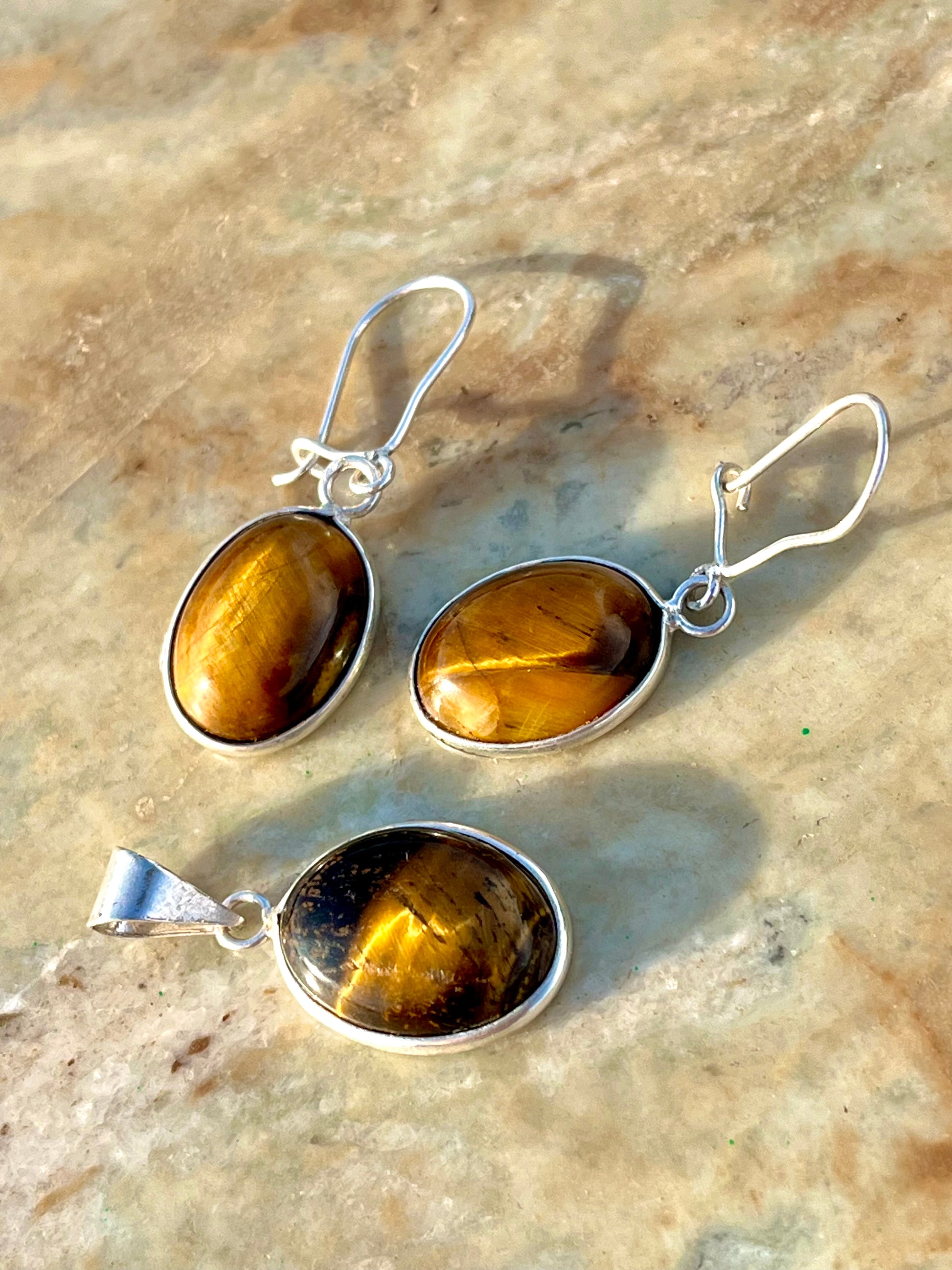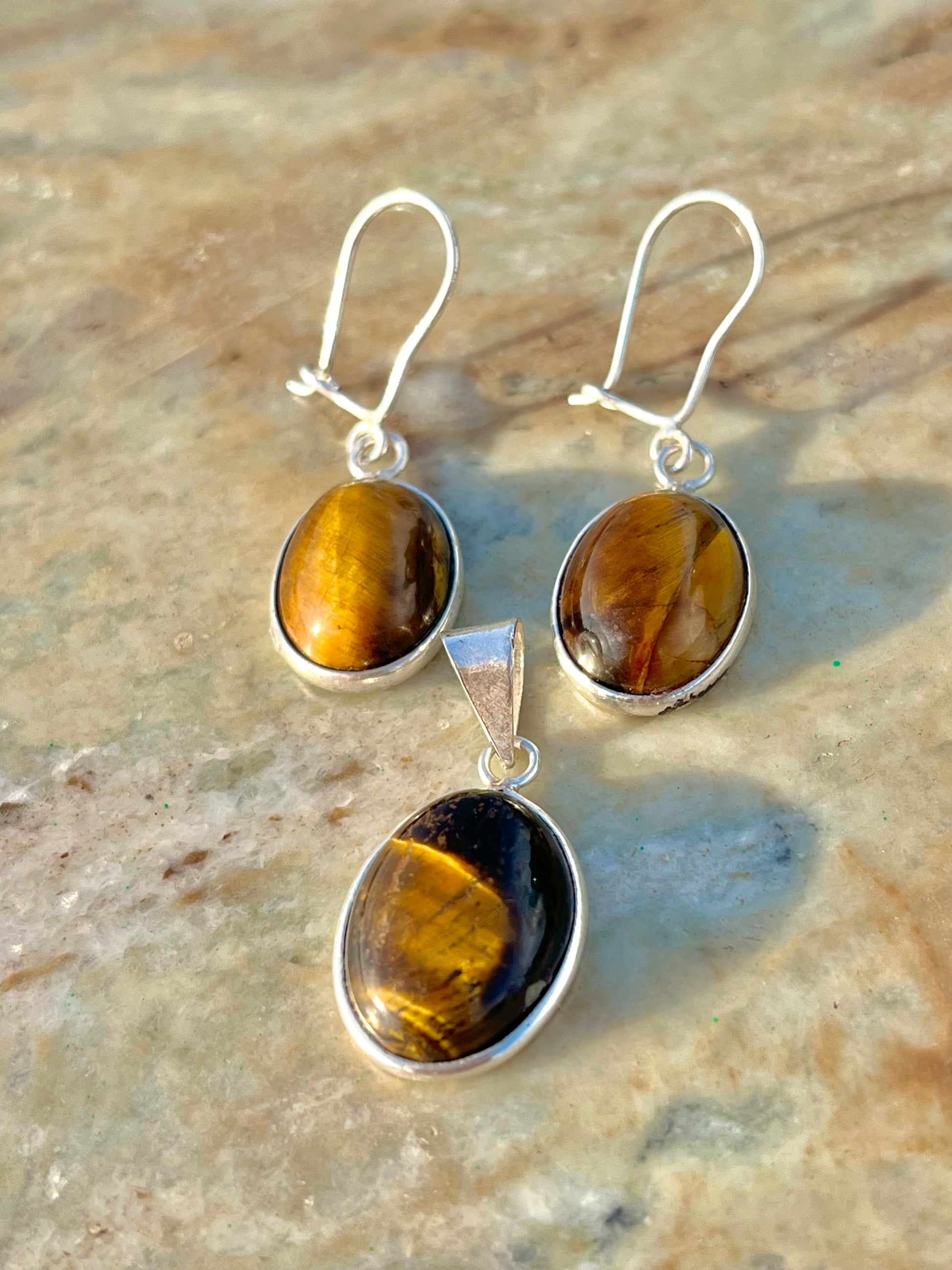 طقم فضة بحجر عين نمر اصلي